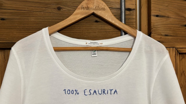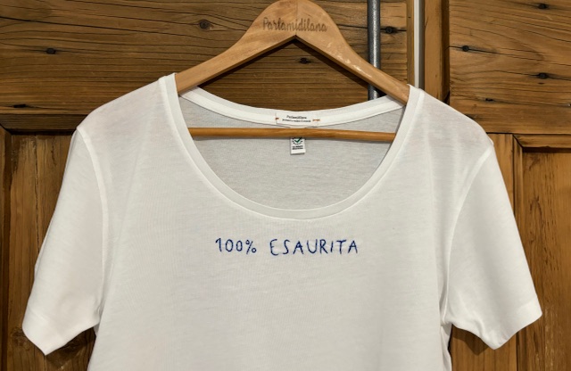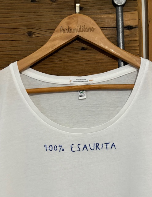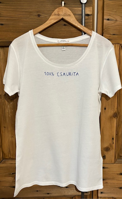 T-shirt “100% ESAURITA” ricamata a mano. Vedi tabella TAGLIE in galleria foto