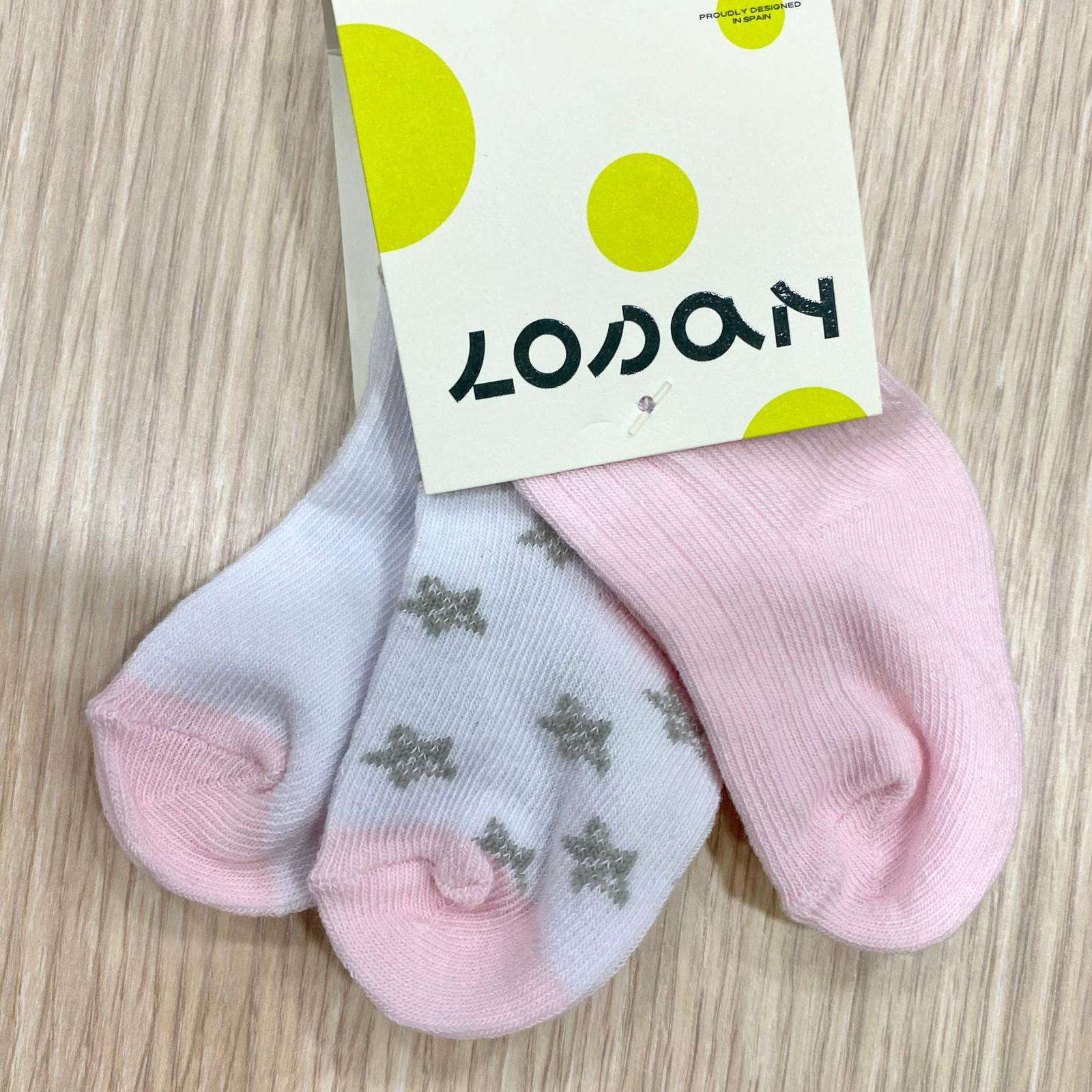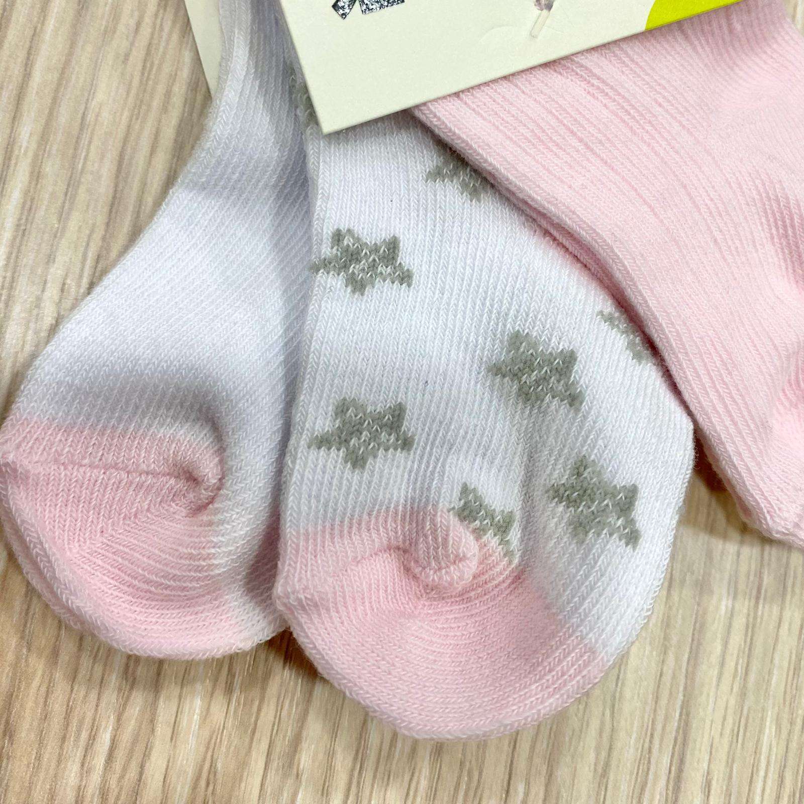 3 pack calzini neonata in cotone, di colore bianco e rosa, con disegno ricamato. 70% Cotone. 25% Poliammide. 5% Elastane.