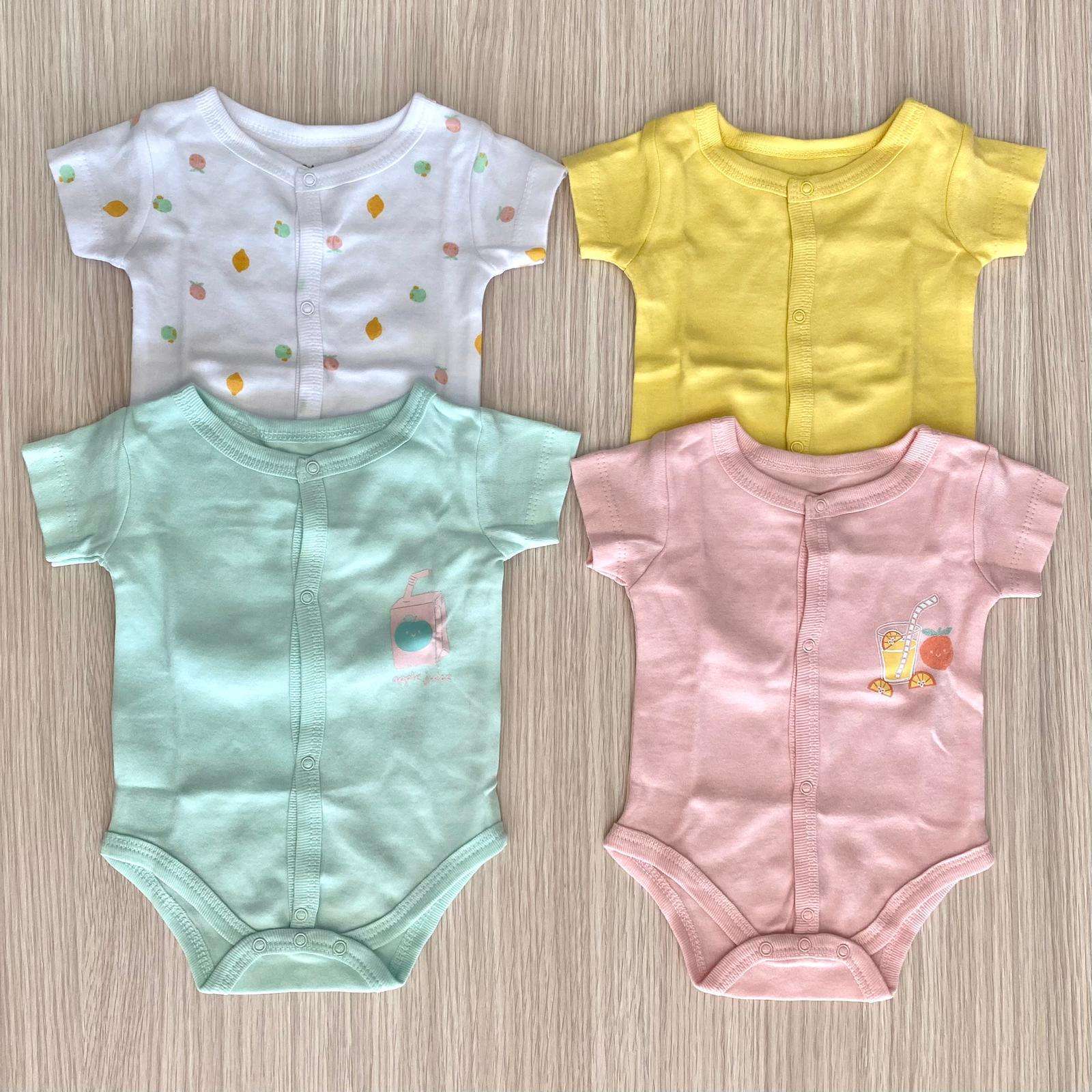 4 pack di body neonata/bambina in cotone, di vari colori, con stampa. 100% Cotone.