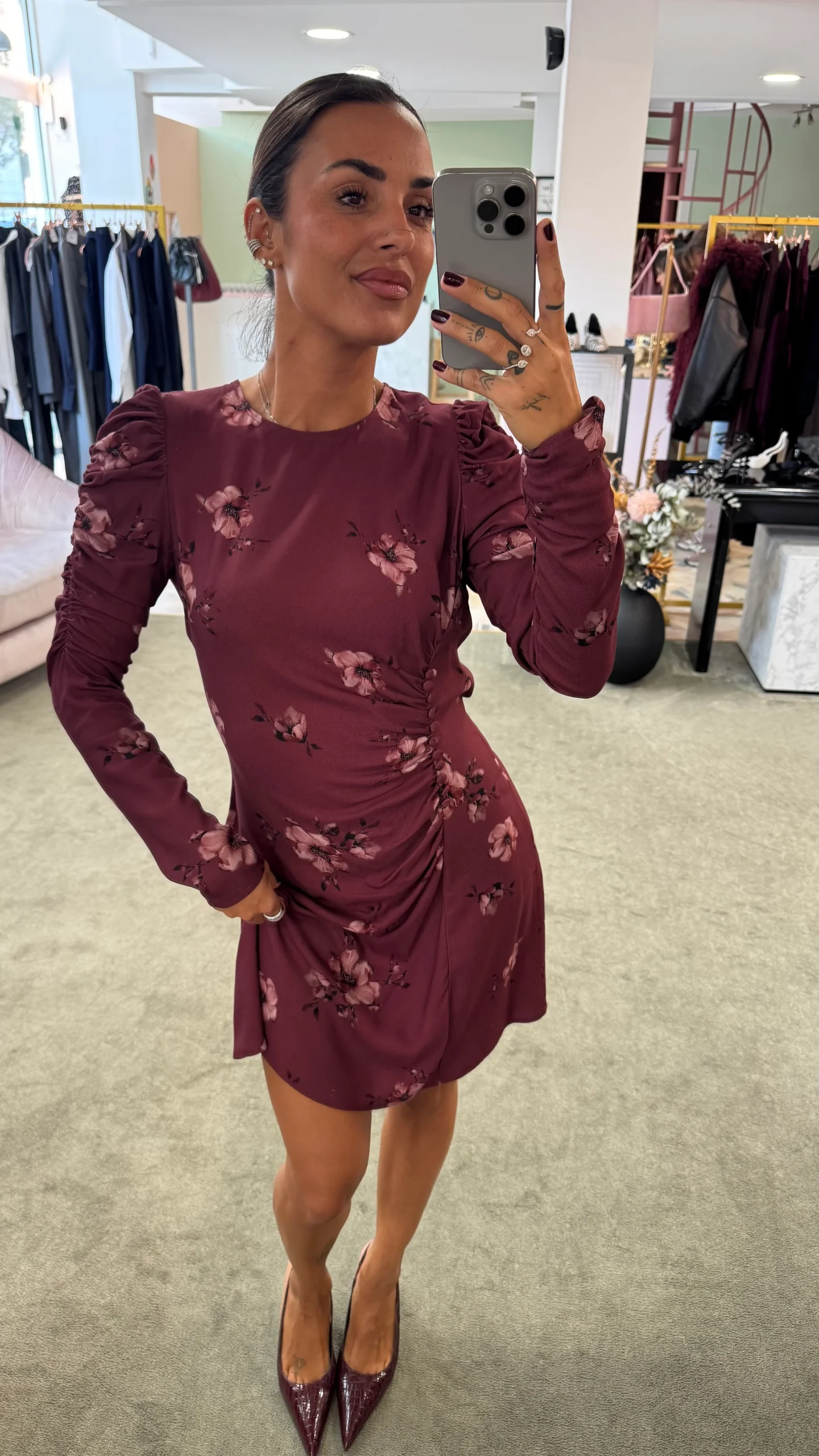 Abito dora corto MAR DE MARGARITAS bordeaux con fiori
