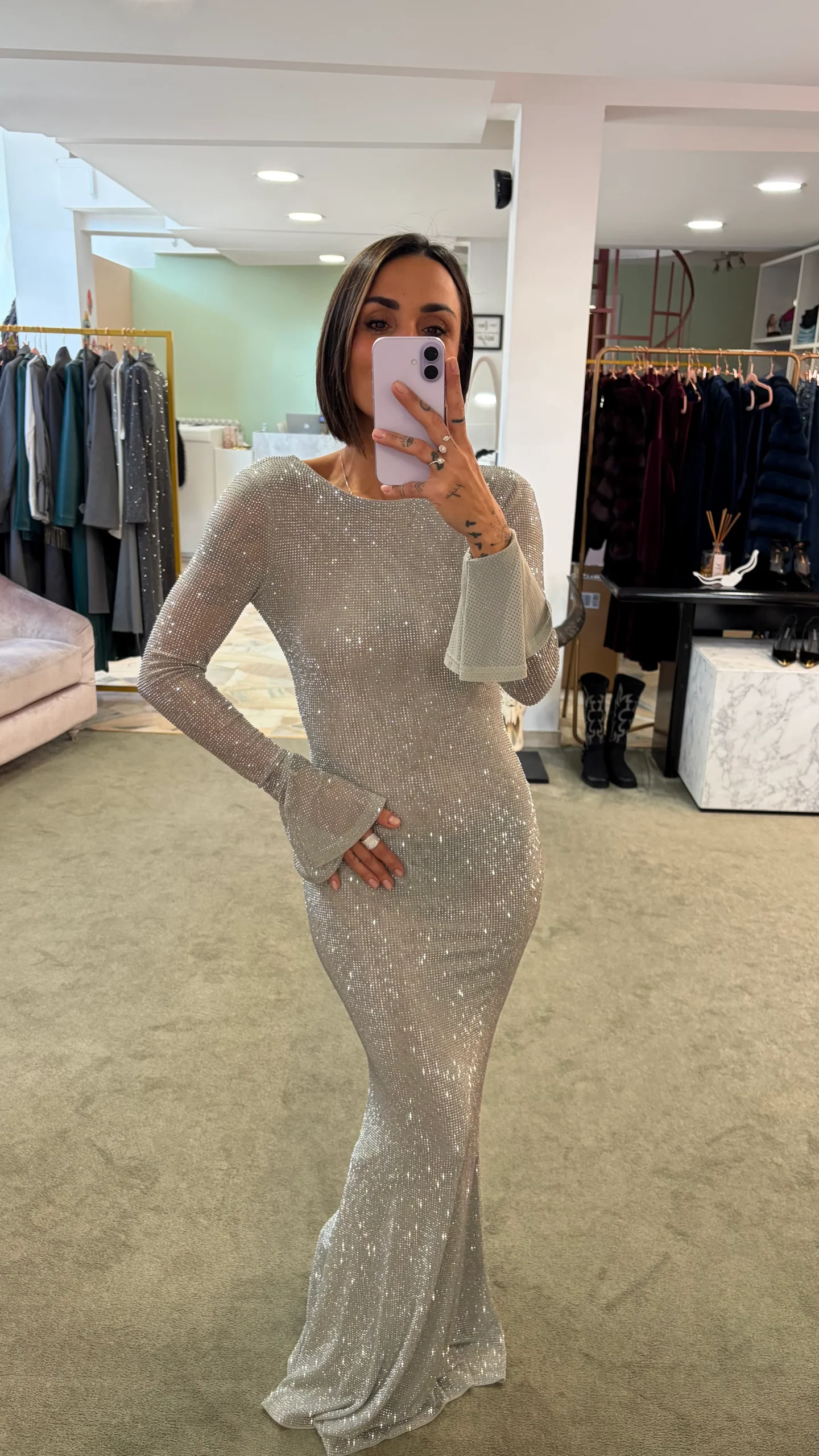 Abito lungo argento crystal tw