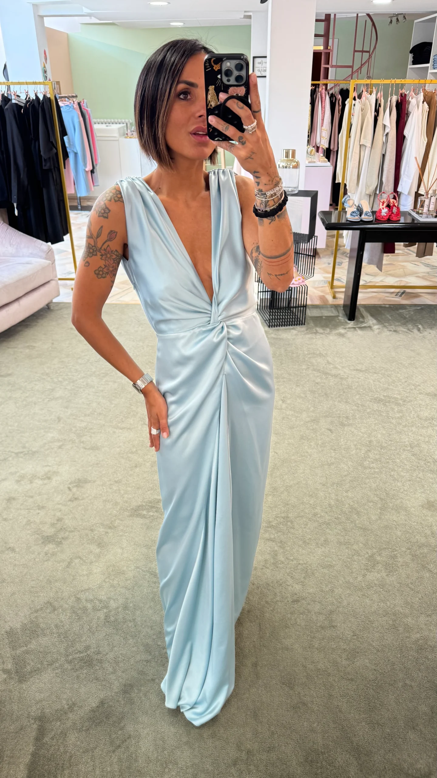 Abito lungo azzurro cielo incrociato in satin Actualee