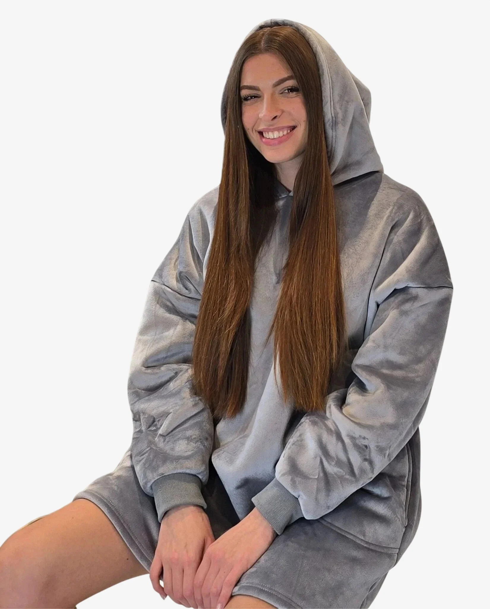 Questo abito oversize da casa è il capo ideale per trascorrere giornate di relax nel massimo comfort. Realizzato con un tessuto morbido e caldo, ti avvolgerà in una sensazione di benessere ogni volta che lo indosserai. Perfetto per chi ama trascorrere il tempo libero in casa senza rinunciare allo stile.