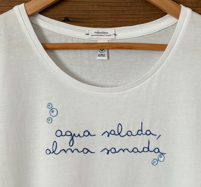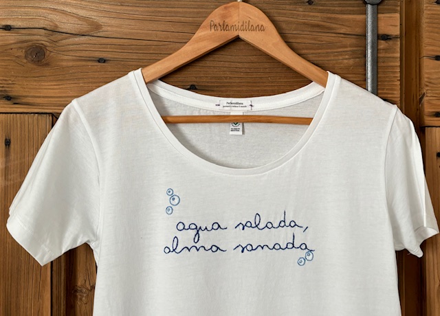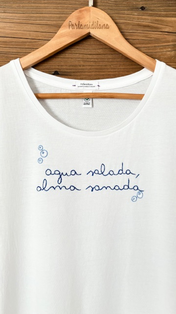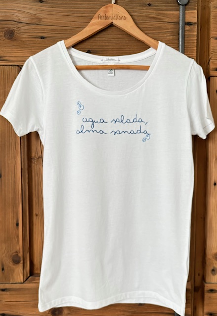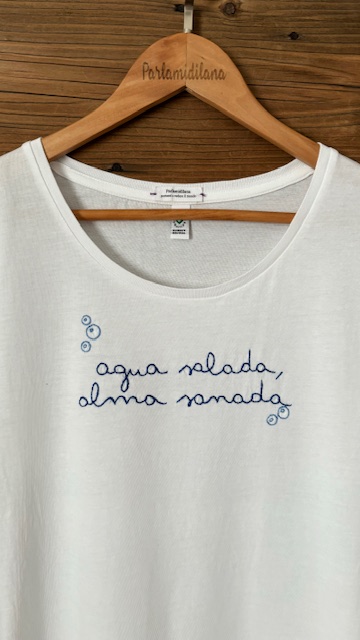 T-shirt “AGUA SALADA ALMA SANADA” ricamata a mano. Vedi tabella TAGLIE in galleria foto