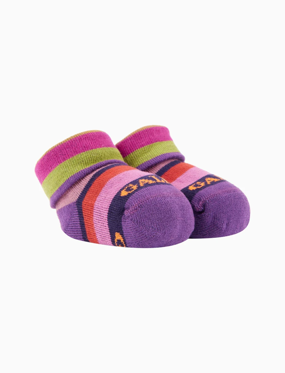 Babbucce da bambino realizzate in Italia in morbido cotone. Un tocco di originalità inconfondibile anche per i più piccoli. L’iconica fantasia a righe multicolor, nei toni del viola, fa immediatamente riconoscere lo stile unico di Gallo. Il brand Gallo è ricamato a contrasto in punta.