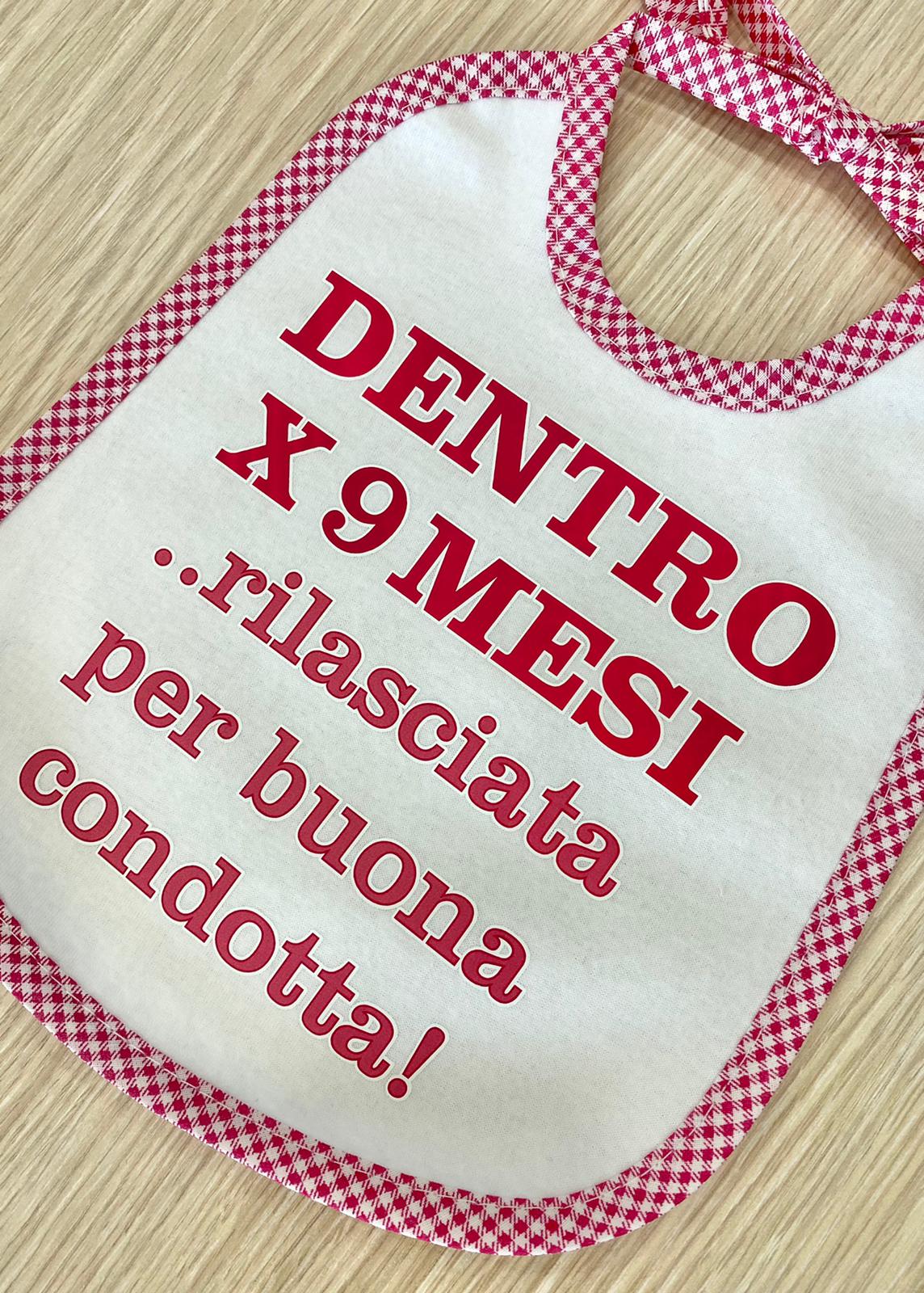 Bavetta con scritta “DENTRO X 9 MESI..rilasciata per buona condotta”