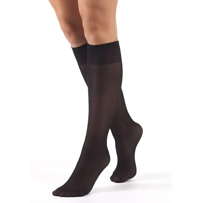 Il gambaletto riposante 40 รจ contraddistinto da una superficie opaca e un confortevole polsino. ร progettato per offrire una compressione graduata, ideale per chi trascorre molte ore in piedi o seduto.