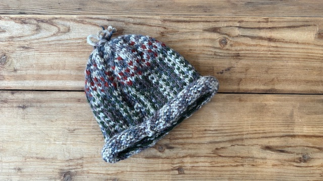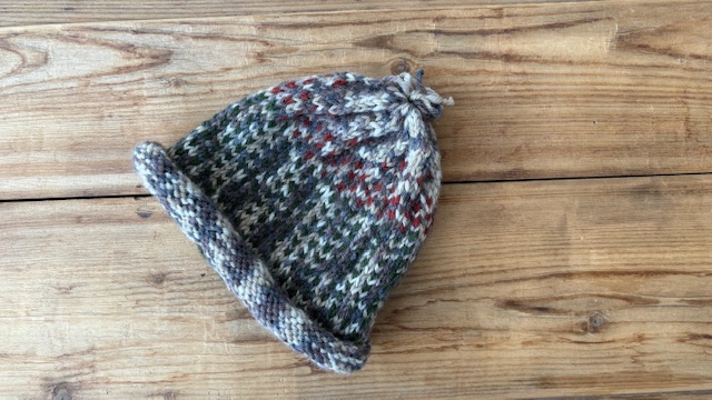 Berretto in lana/misto lana, realizzato recuperando filati di rimanenze di magazzino o derivati da altre lavorazioni, in modo da dagli nuova utilità ed allungare il ciclo di vita.