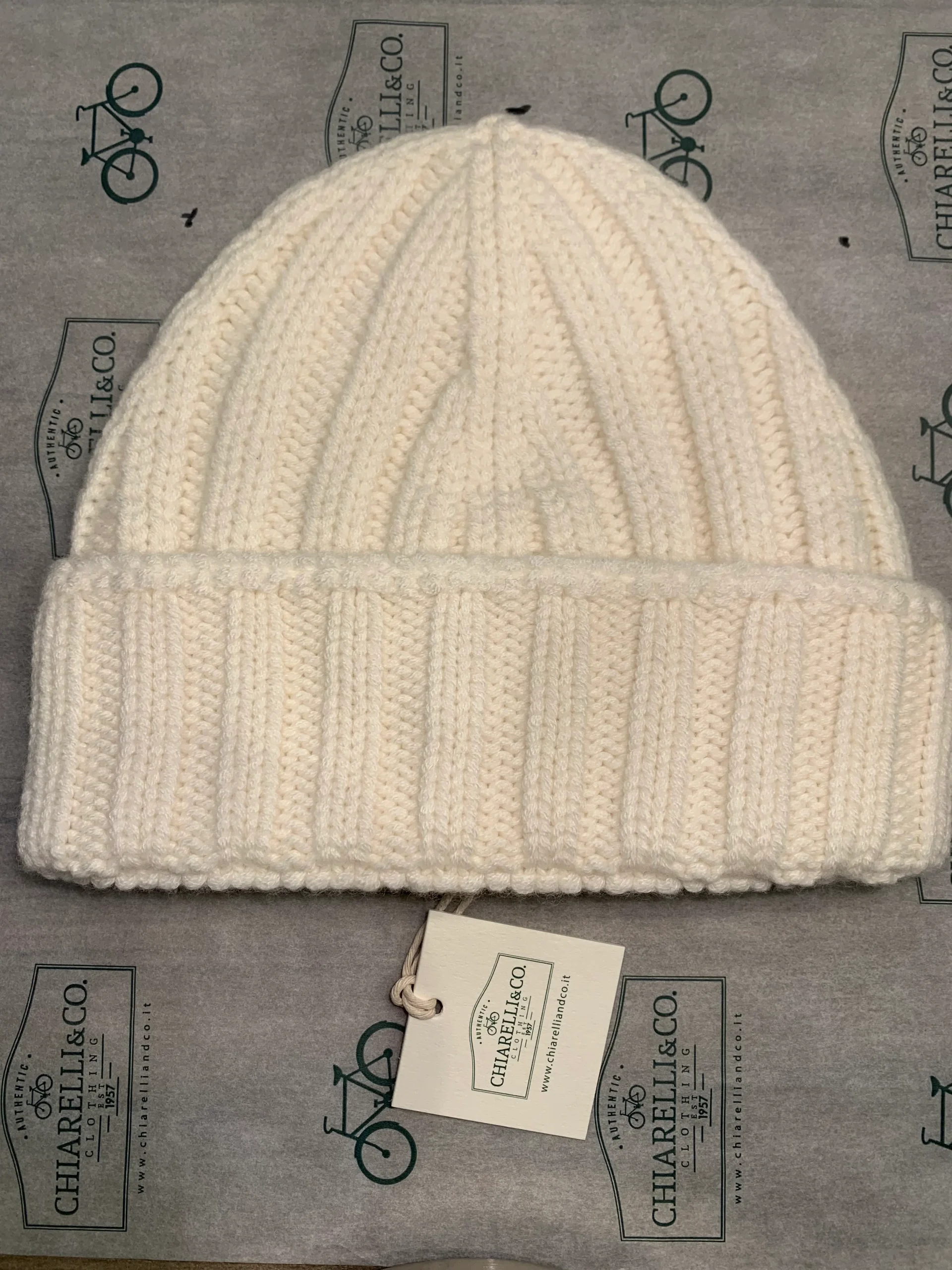 Berretto Chiarelli a coste larghe in puro cashmere bianco