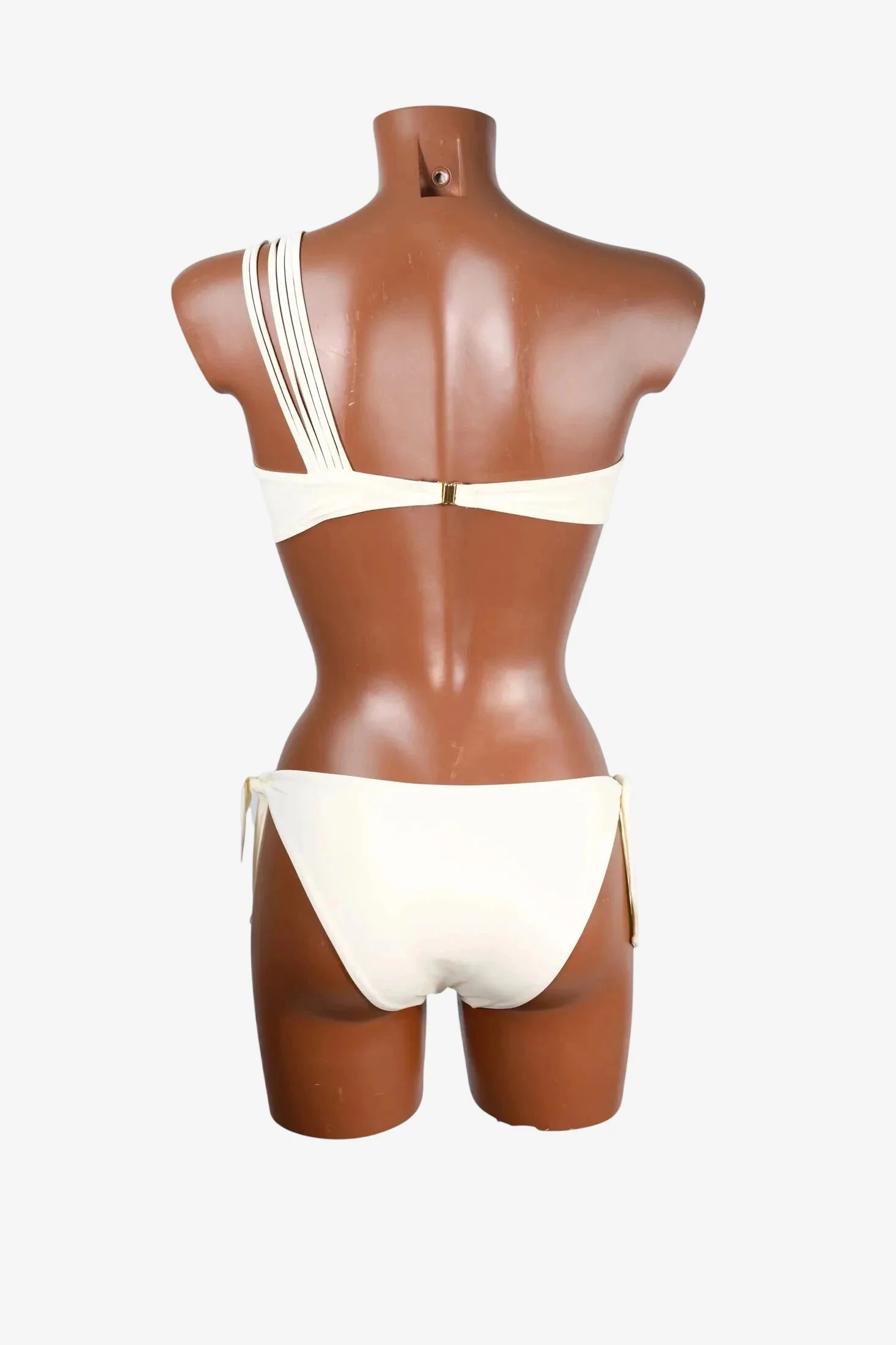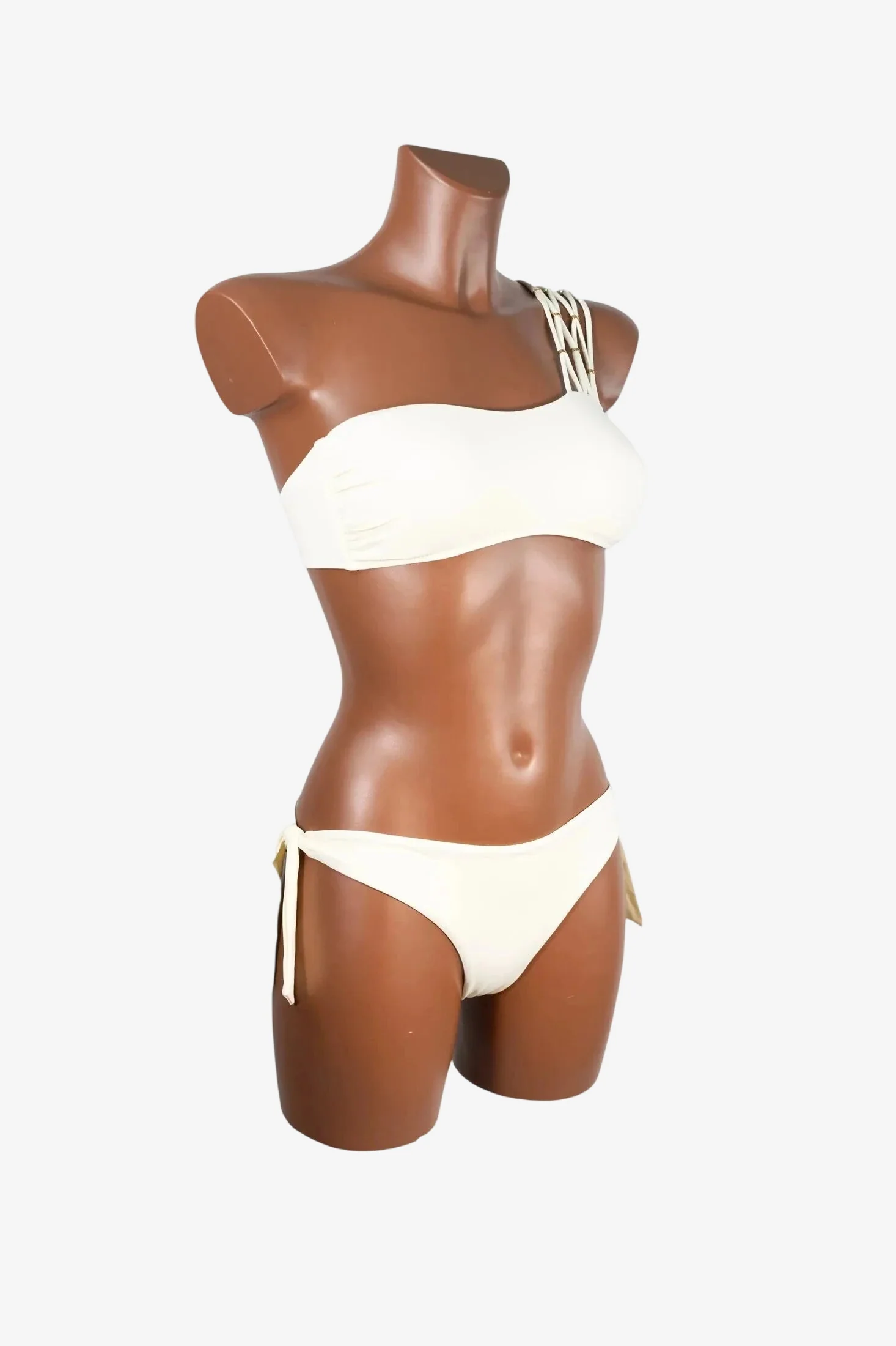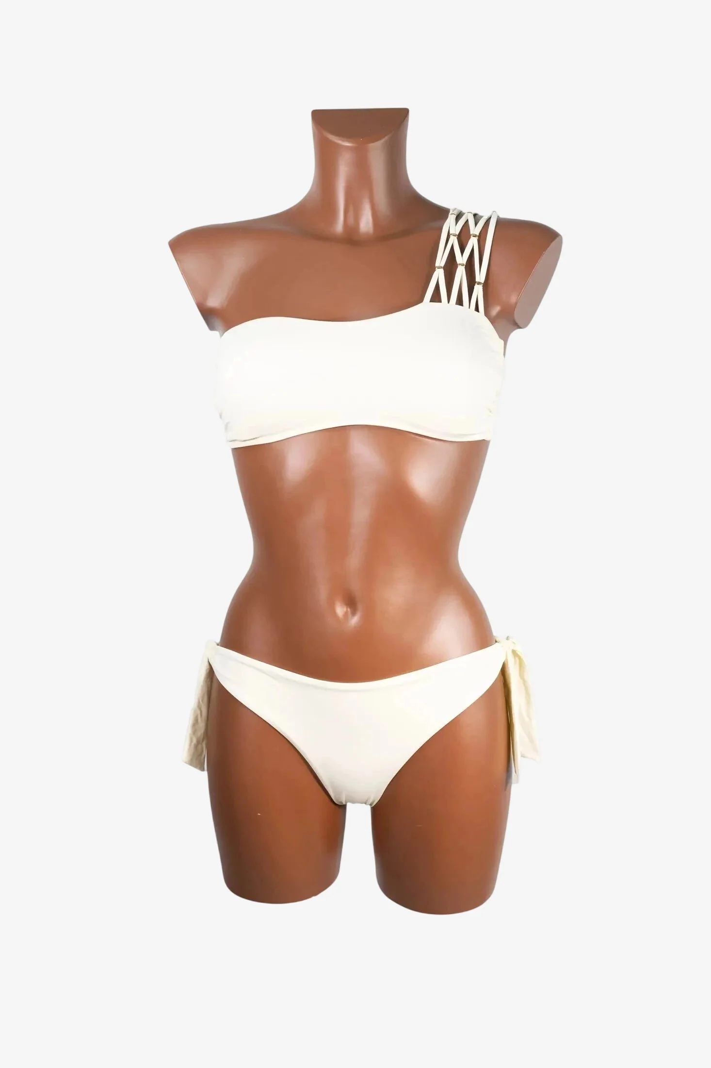 Bikini monospalla donna Marette panna con stringhe, perfetto per la spiaggia con eleganza e stile asimmetrico.