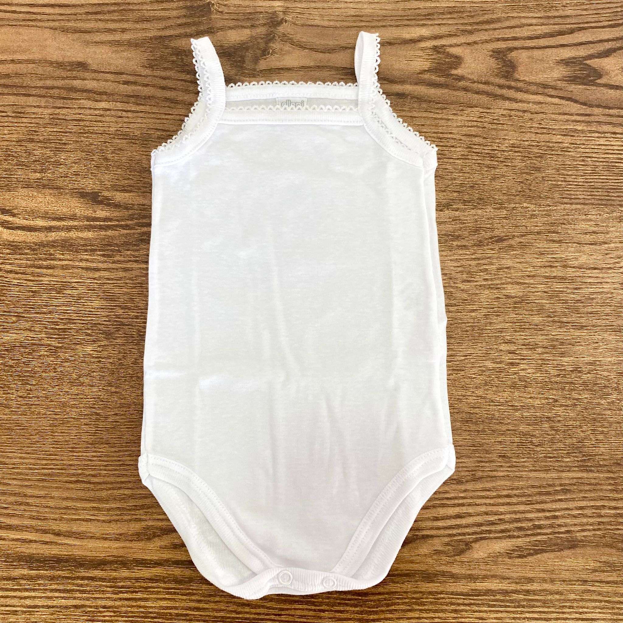 Body neonata/bambina a spalla stretta in cotone, di colore bianco. 3 Mesi: 62 cm. 6 Mesi: 68 cm. 9 Mesi: 74 cm. 12 Mesi: 80 cm. 18 Mesi: 86 cm. 24 Mesi: 92 cm. 3 Anni: 98 cm. 4 Anni: 104 cm. 100% Cotone.