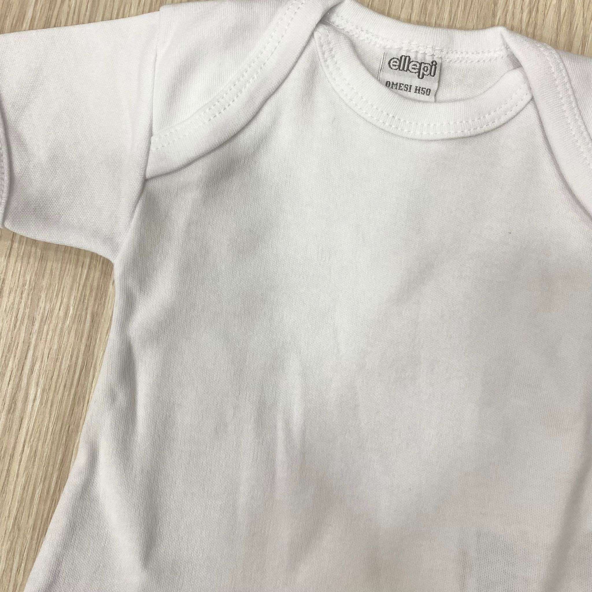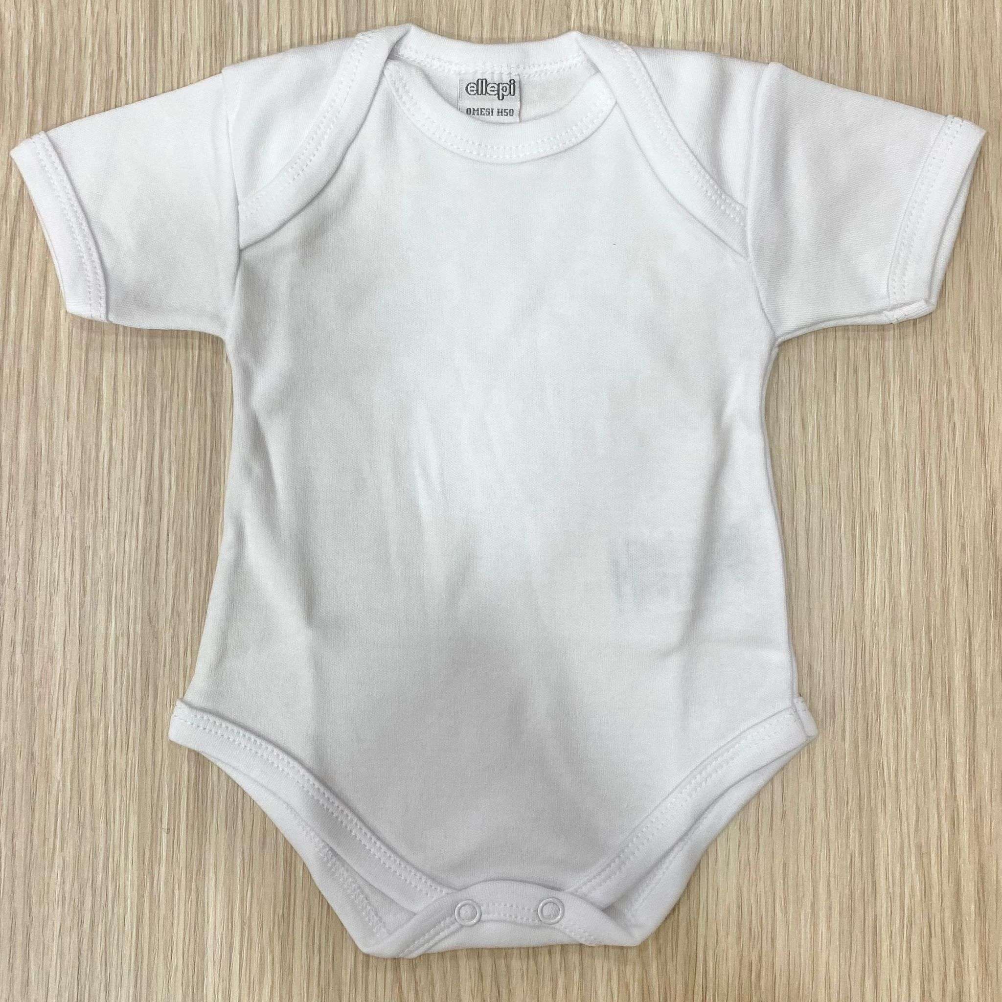 Body neonato/a mezza manica in caldo cotone leggermente felpato, di colore bianco. 100% Cotone.