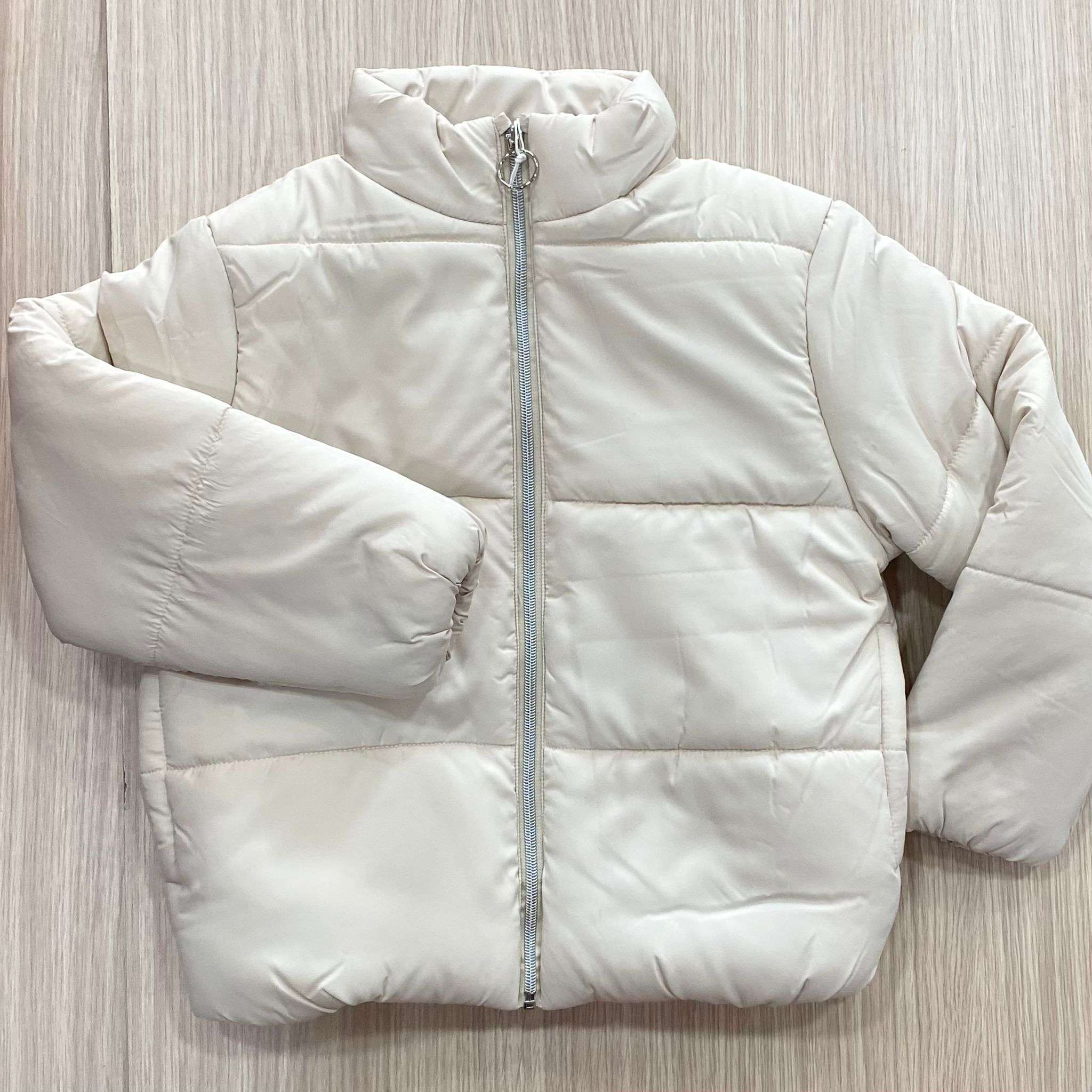 Bomberino bambina/ragazza imbottito, di colore beige, con tasche.