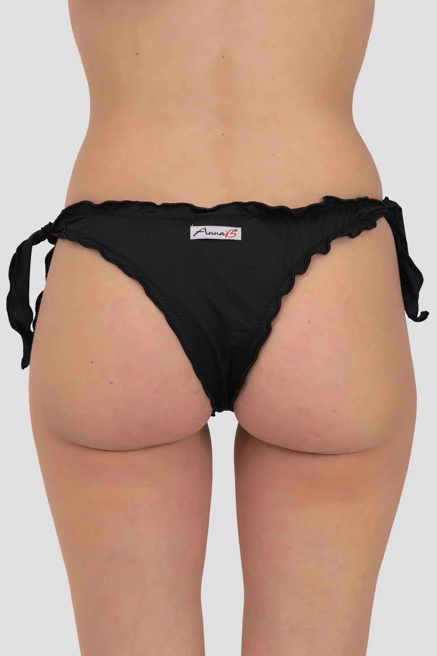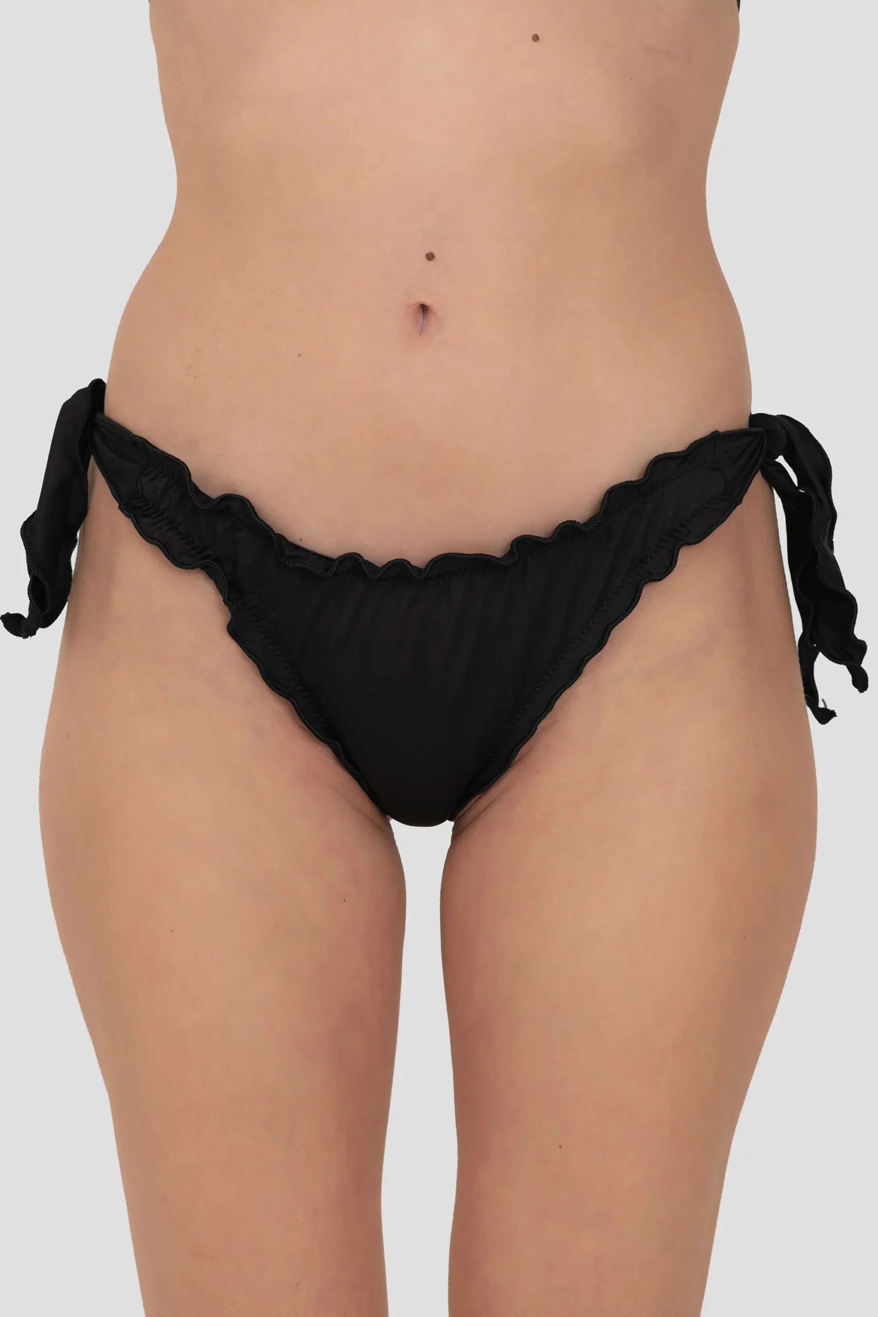 Brasiliana con orlo arricciato “frou-frou” e lacci annodabili sui fianchi, realizzata in morbida microfibra super comfortevole, di altà qualità e resistente a mare, sole e cloro.