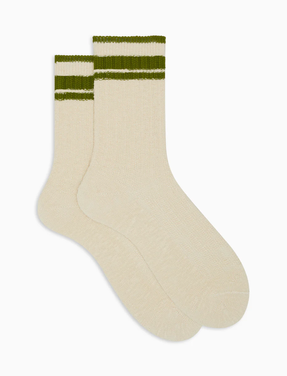 Queste Calze corte di Gallo sono realizzate in Italia in morbido cotone. Tinta unita color corda con polso a righe verde oliva a contrasto. Si abbinano facilmente ad ogni stile, regalando un tocco di originalità anche alle mise più formali