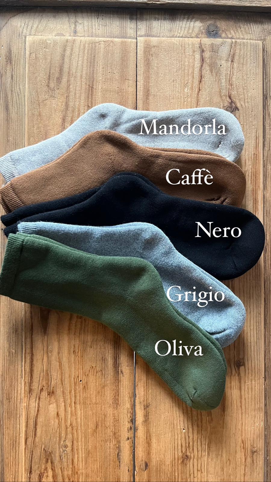 | Colore calzini | Antracite, Bordeaux, Caffè, Grigio, Latte, Mandorla, Nero, Oliva |