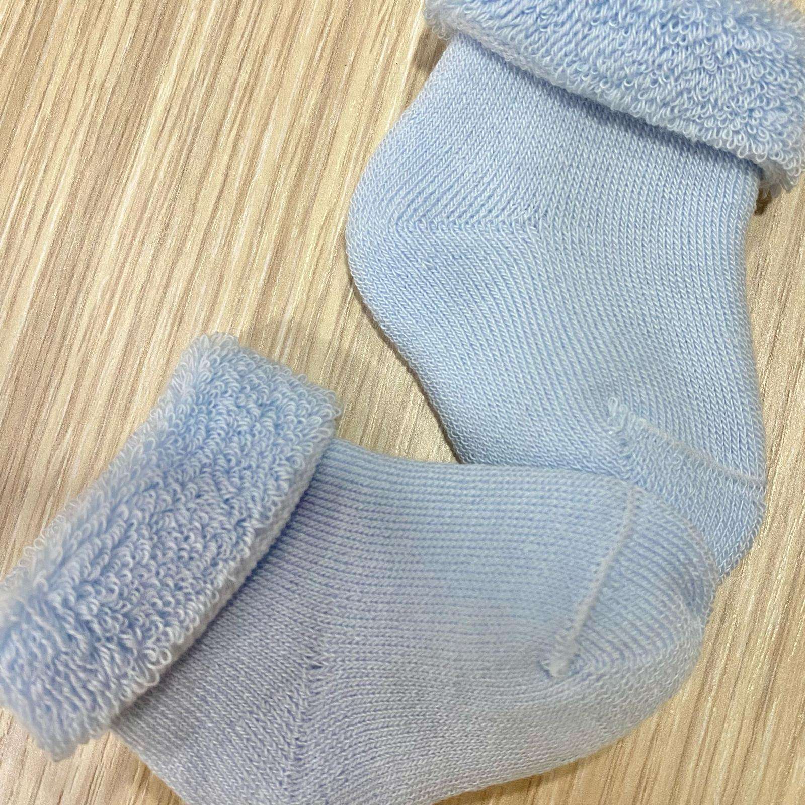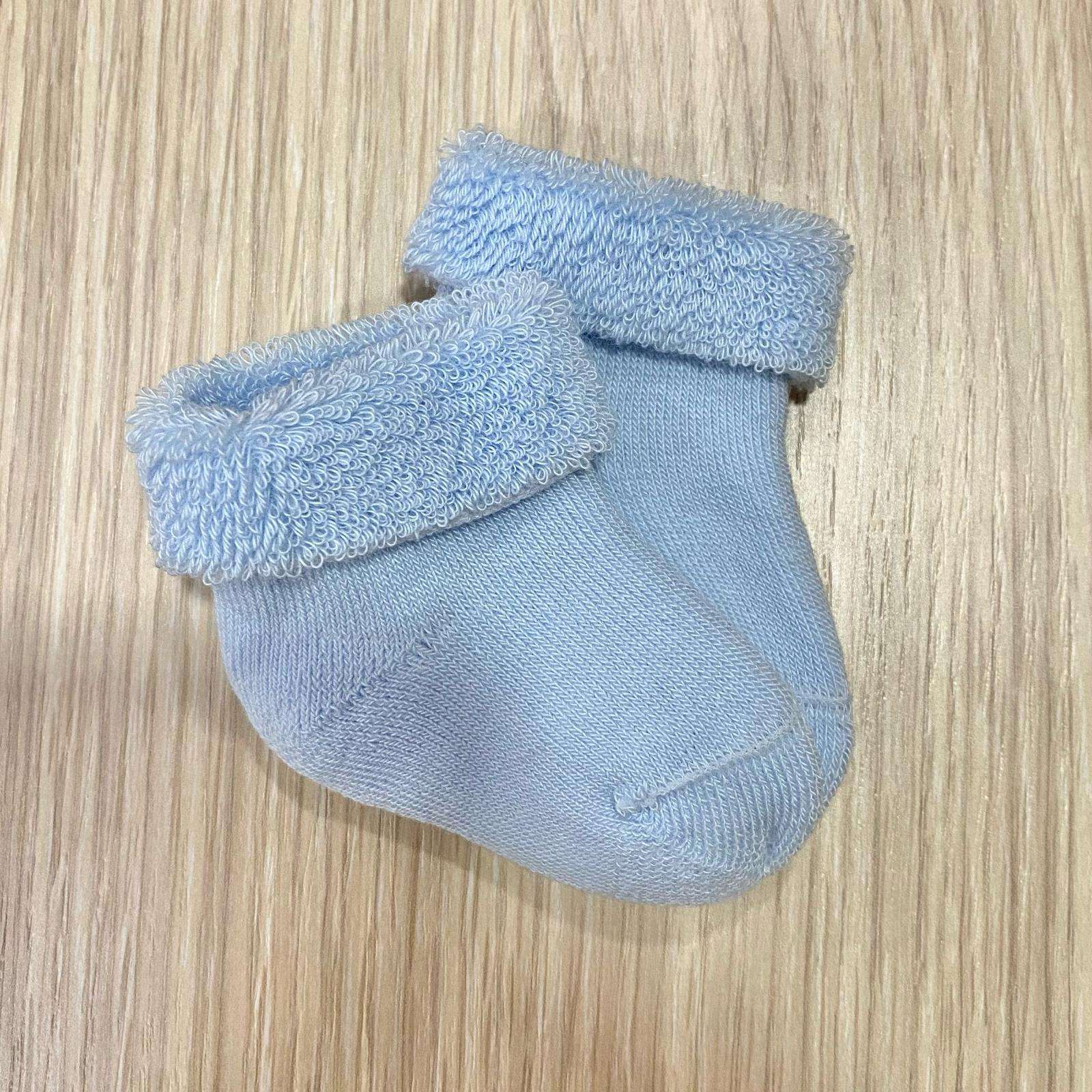 Calzini neonato in spugna di cotone, di colore azzurro.