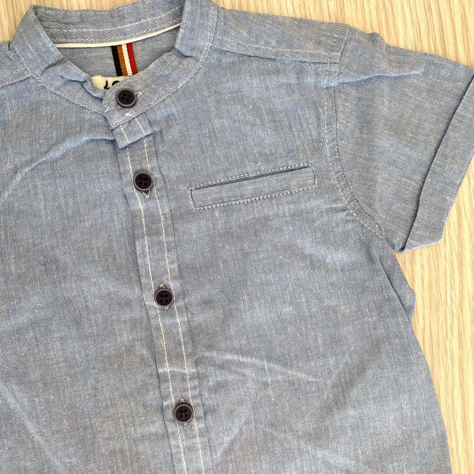 Camicia bambino in lino di cotone, di colore denim. Camicia con collo alla coreana. 70% Cotone. 30% Lino.