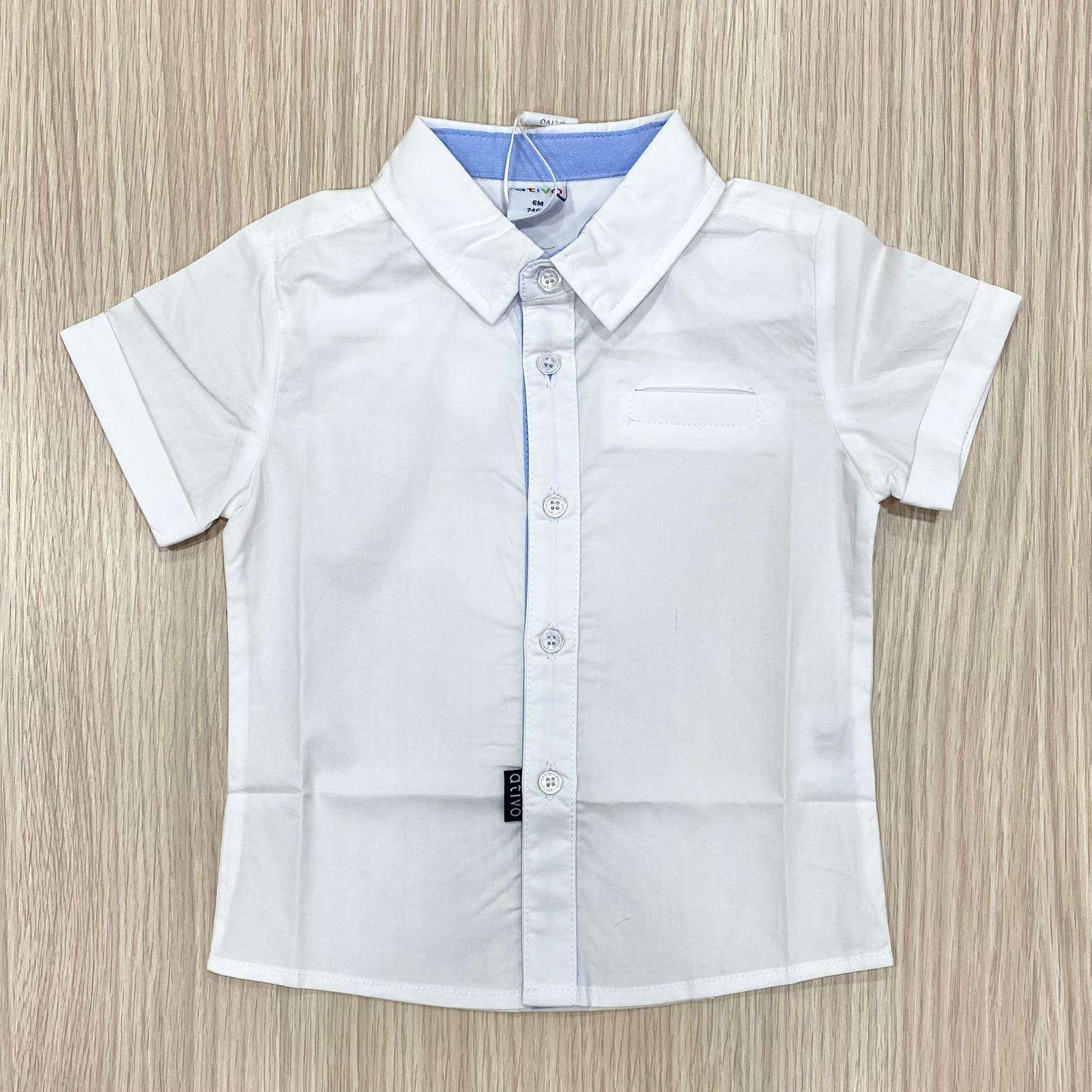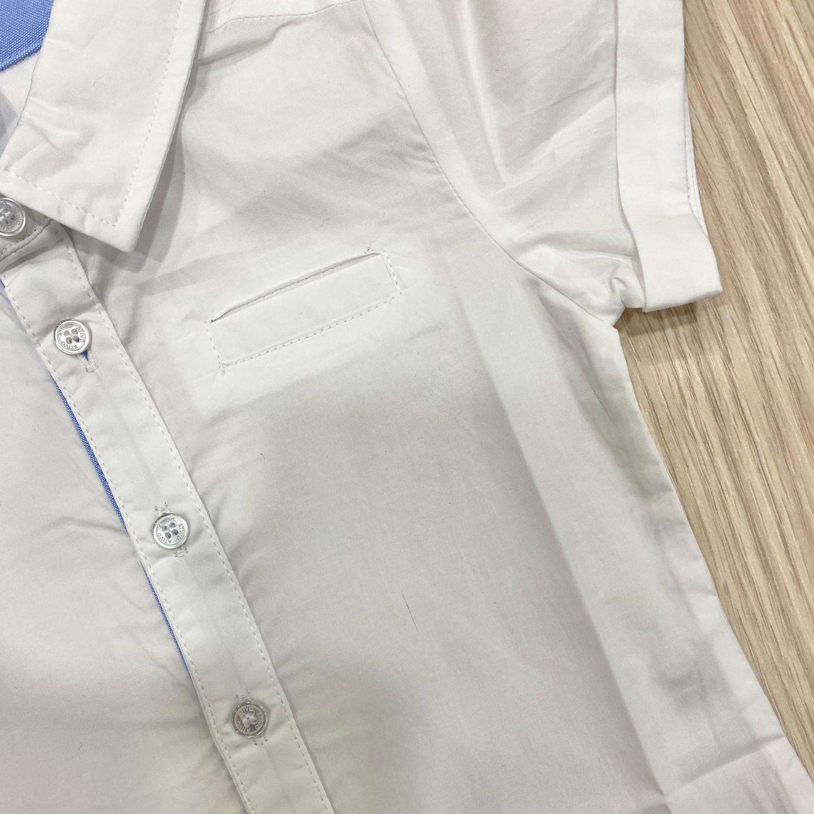 Camicia bambino in cotone, di colore bianco con dettagli di colore azzurro. 100% Cotone.
