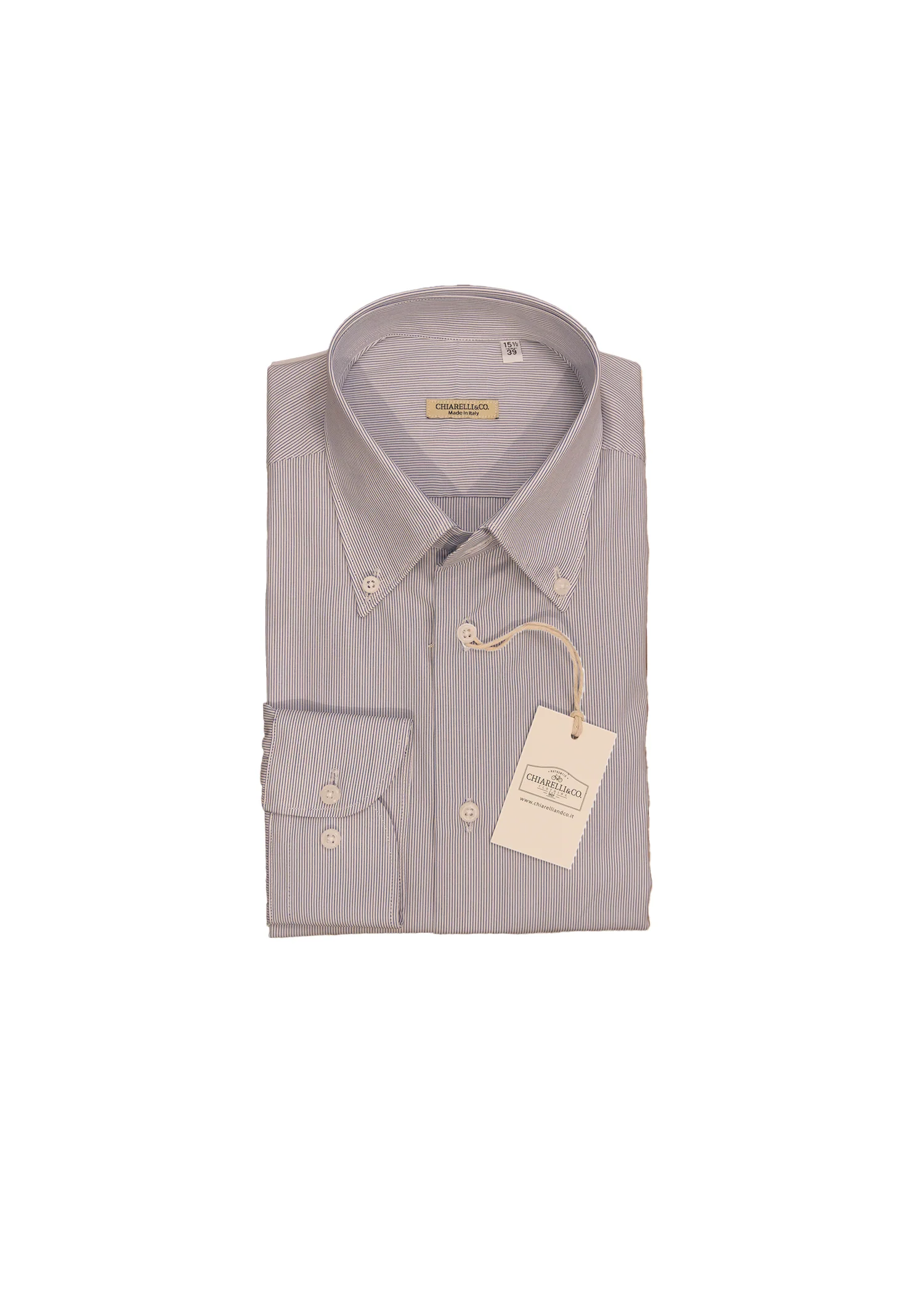 Bellissima camicia in puro cotone adatta per ogni occasione Righe Vestibilita’ tailor Composizione 100% cotone Fabbricata interamente in Italia Collo botton down
