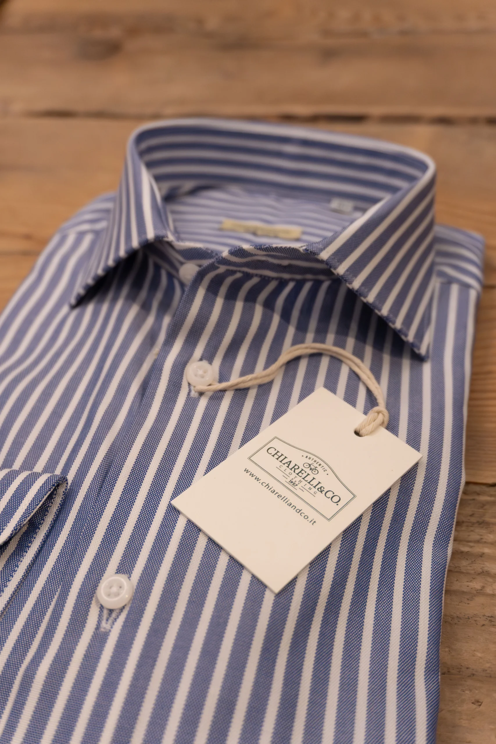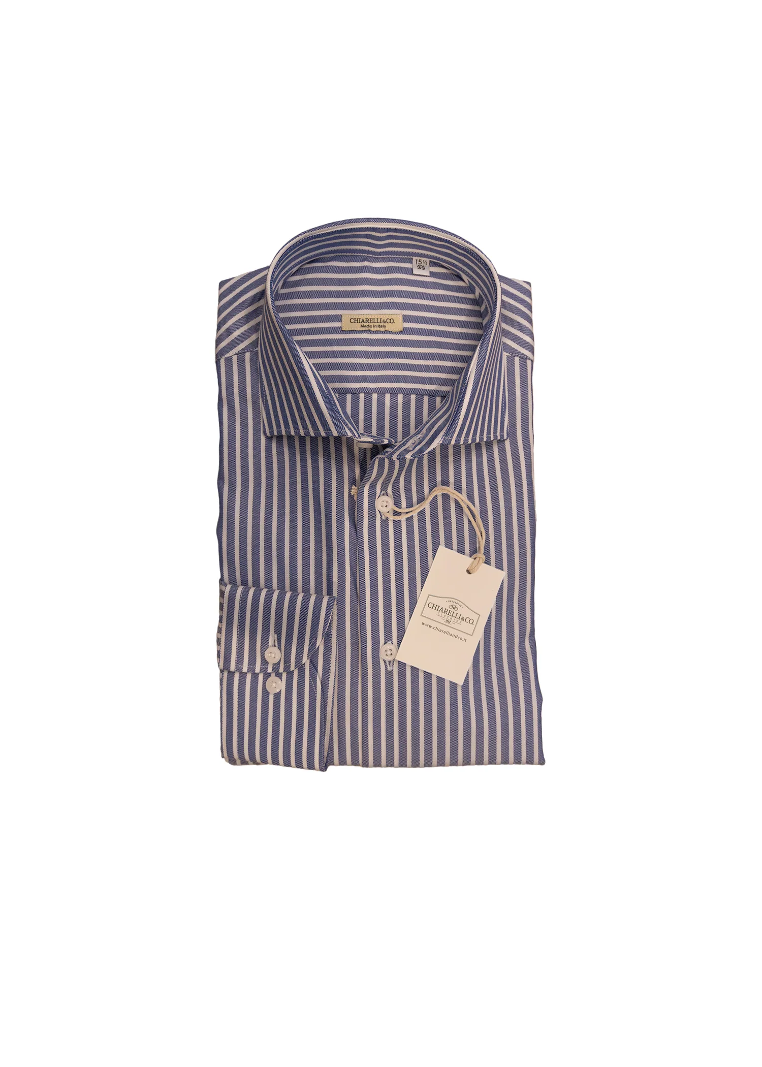 Bellissima camicia in puro cotone adatta per ogni occasione. Righe Vestibilita’ tailor Composizione 100% cotone Fabbricata interamente in Italia Collo francese