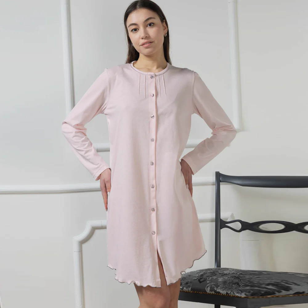 Camicia da notte donna aperta in cotone 9209 panna / rosa