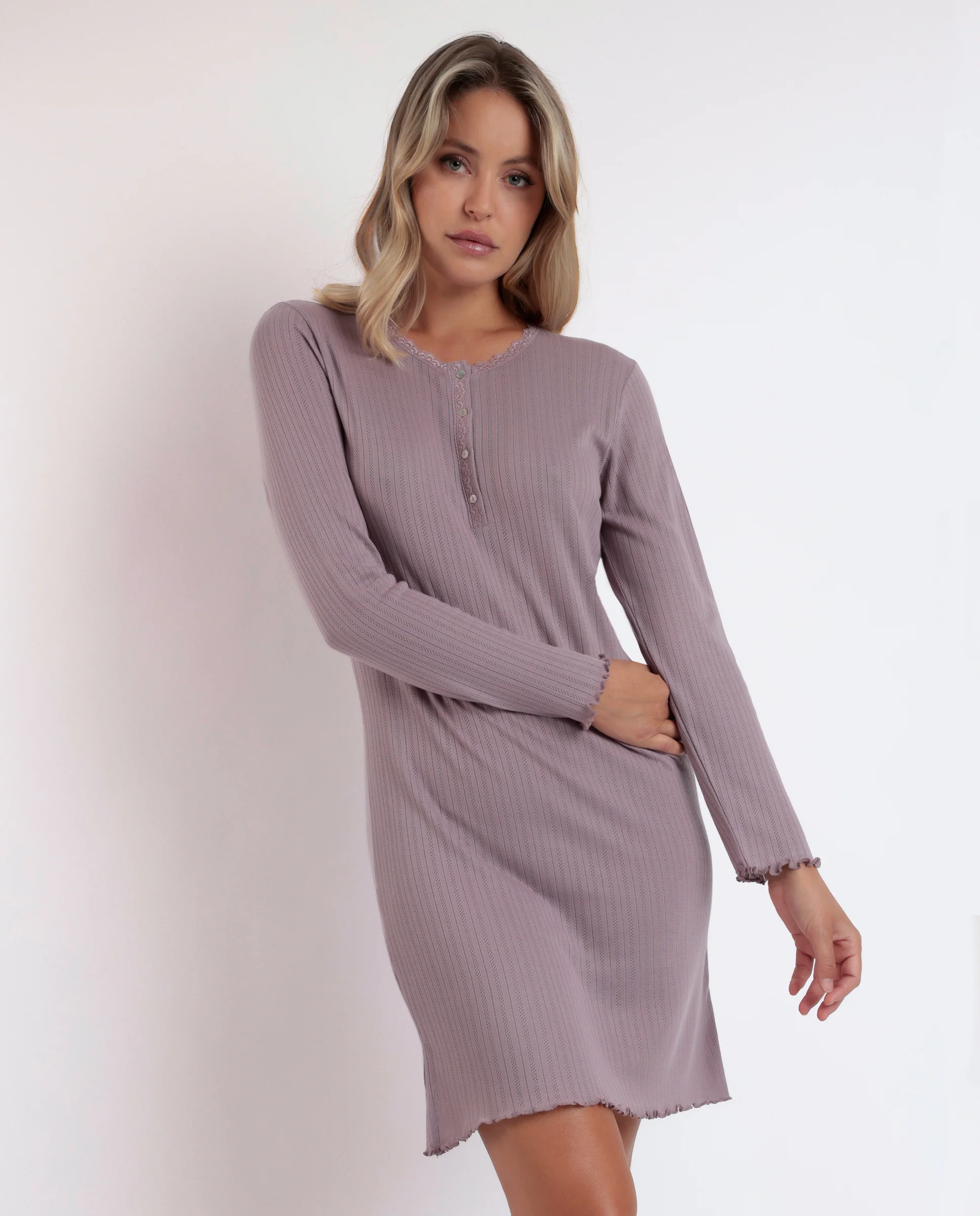 Camicia da notte donna aperta in cotone 9209 panna / rosa