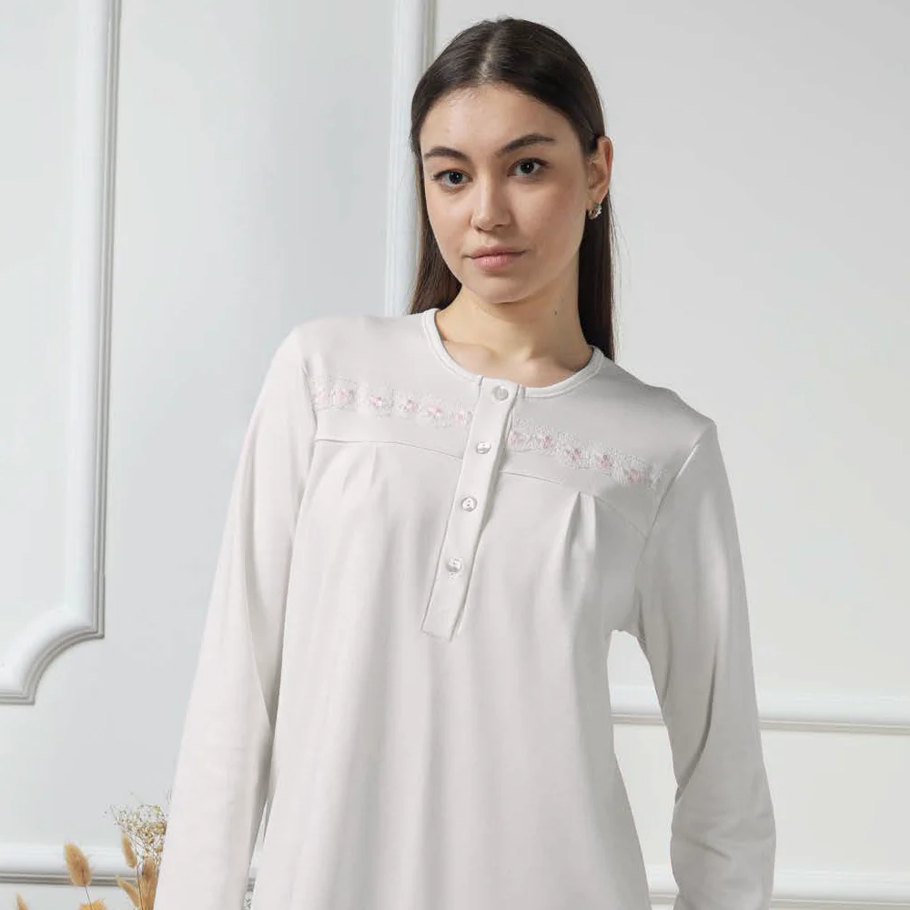 Camicia da notte donna aperta in cotone 9209 panna / rosa