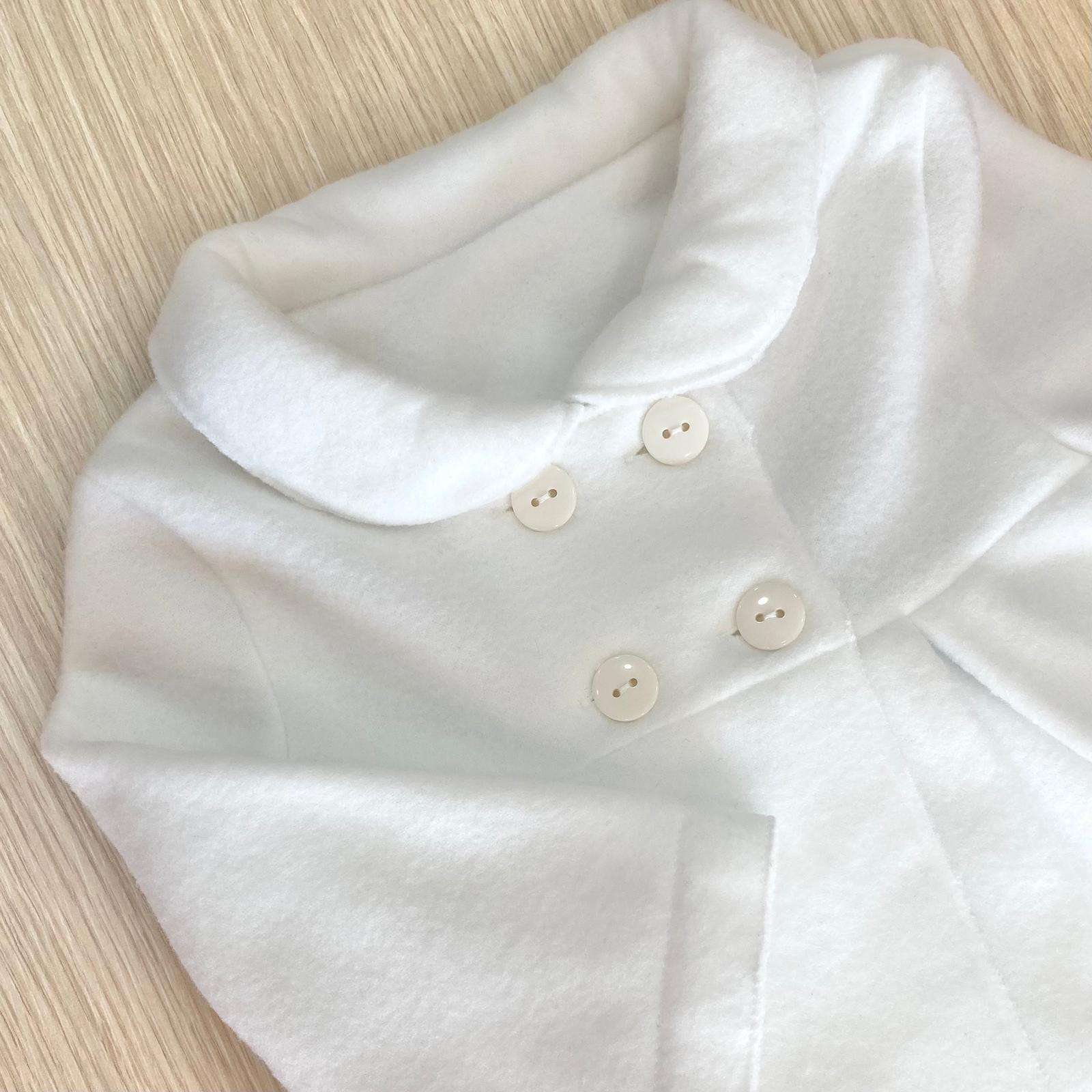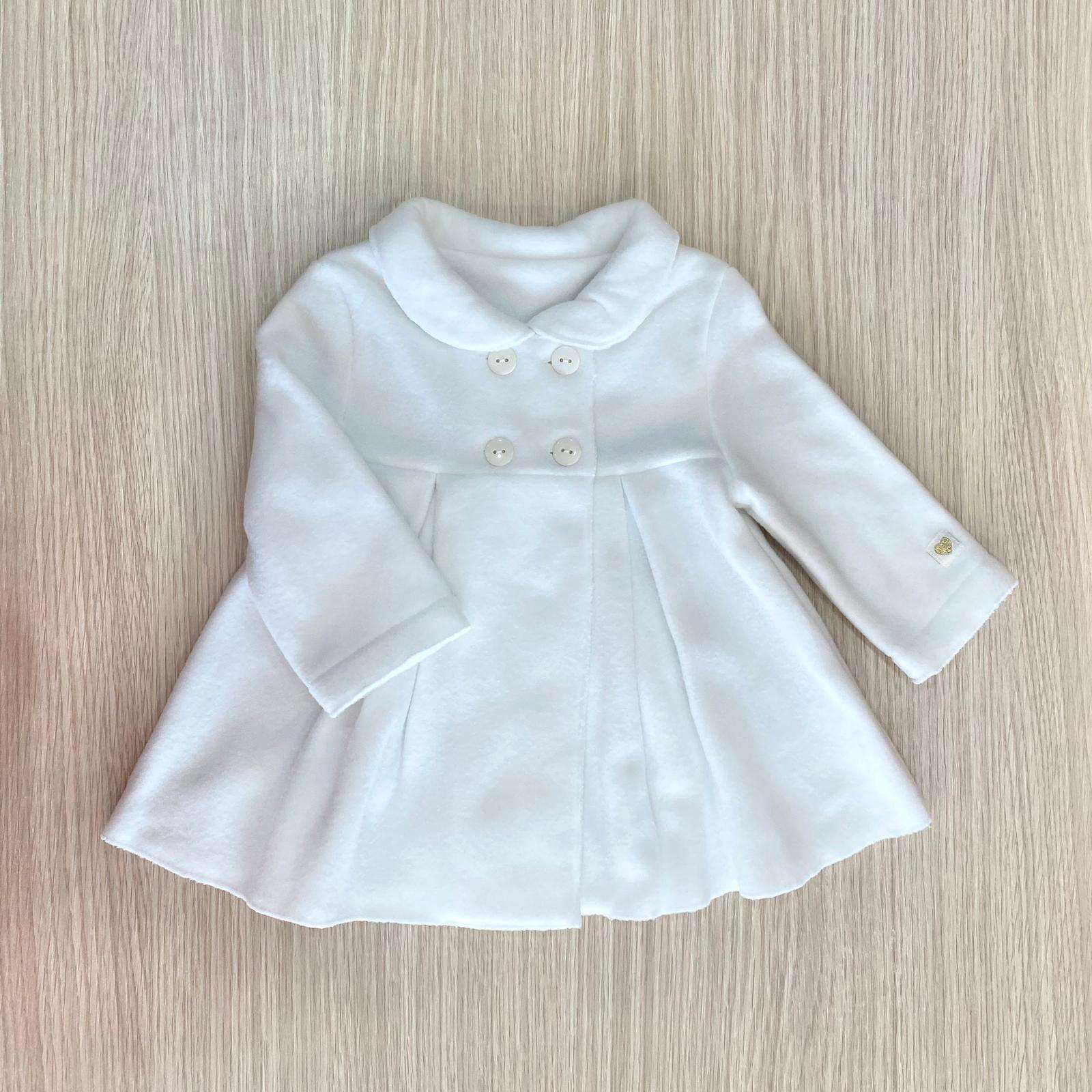 Cappottino neonata/bambina in morbido pile, di colore panna, con bottoncini. Cappottino elegante, ideale per battesimo e cerimonia. 100% Poliestere.