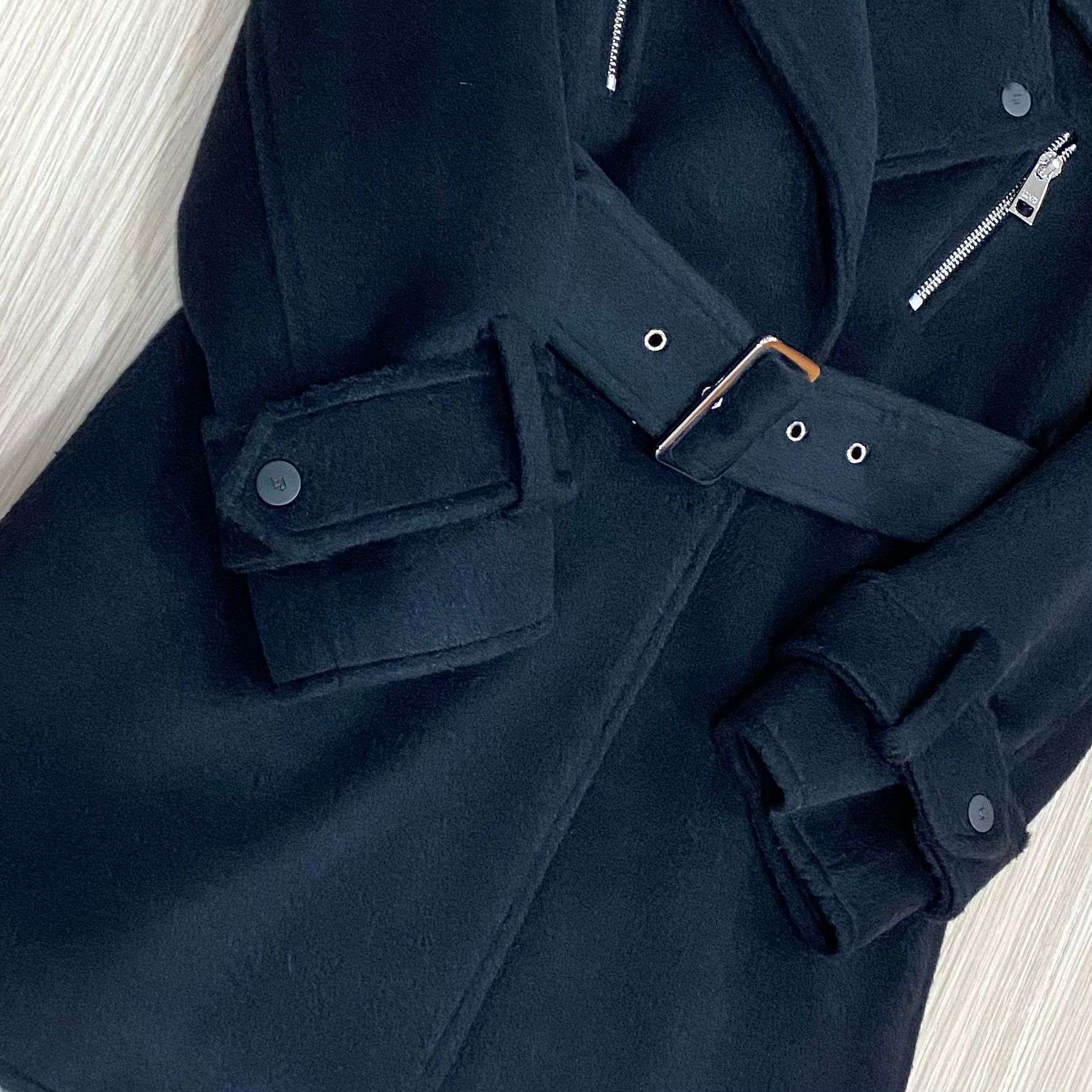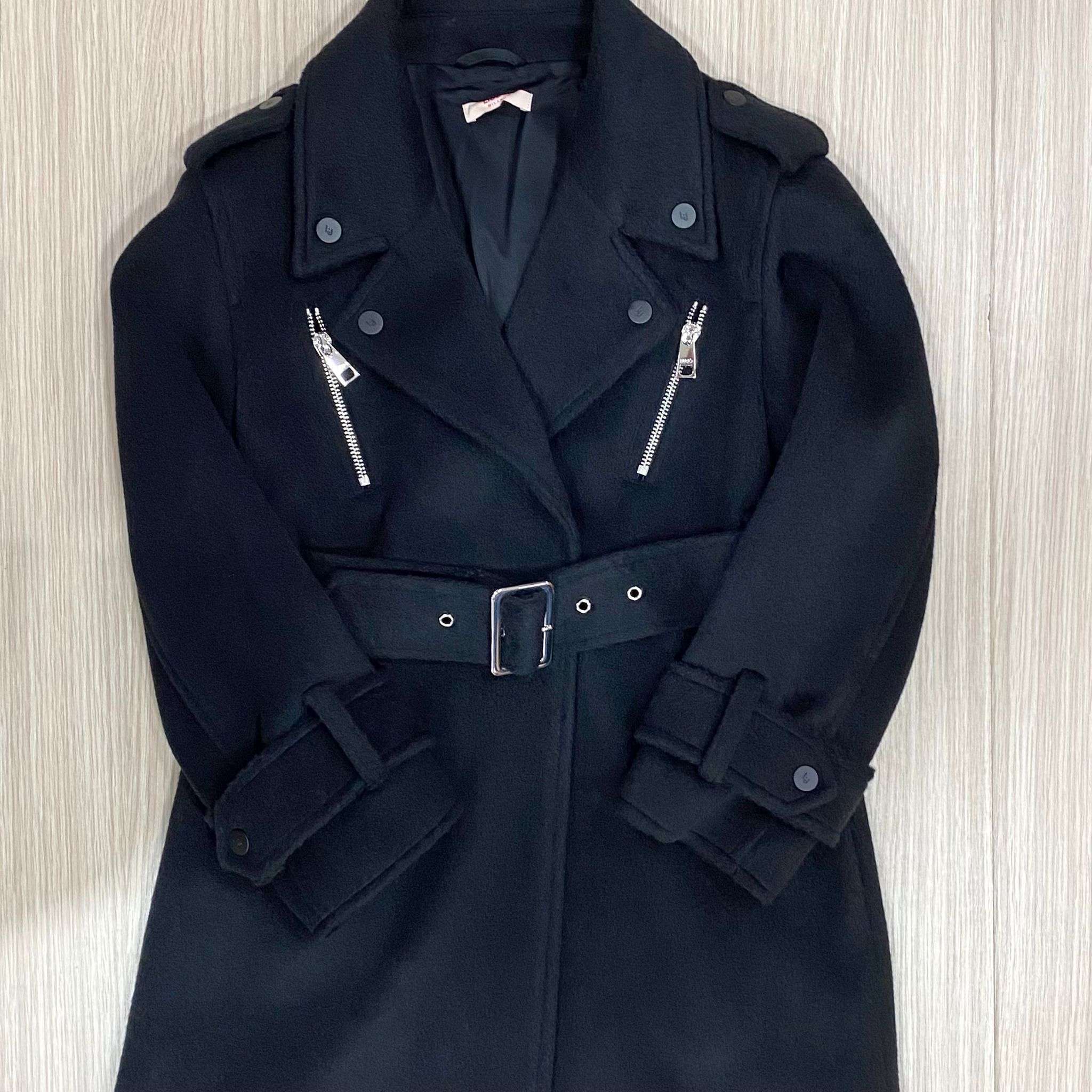 Cappotto bambina/ragazza in panno di maglina, di colore nero, con tasche e cintura regolabile. 8 Anni: 130 cm. 10 Anni: 140 cm. 12 Anni: 152 cm. 14 Anni: 164 cm. 16 Anni:170 cm.