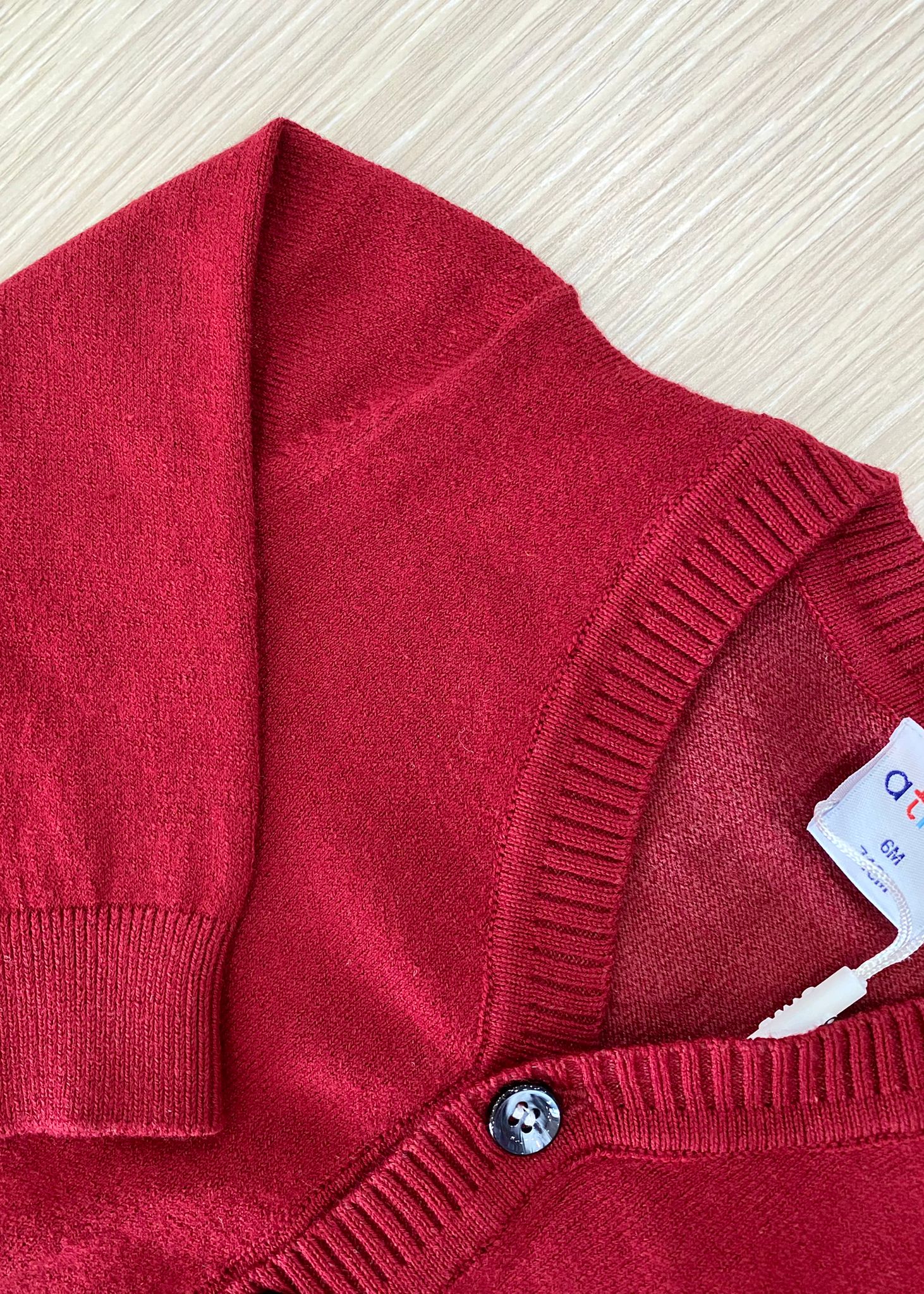 Cardigan bambino in caldo cotone, di colore bordeuax, con applicazione di bottoncini. 90% Cotone. 10% Elastane.