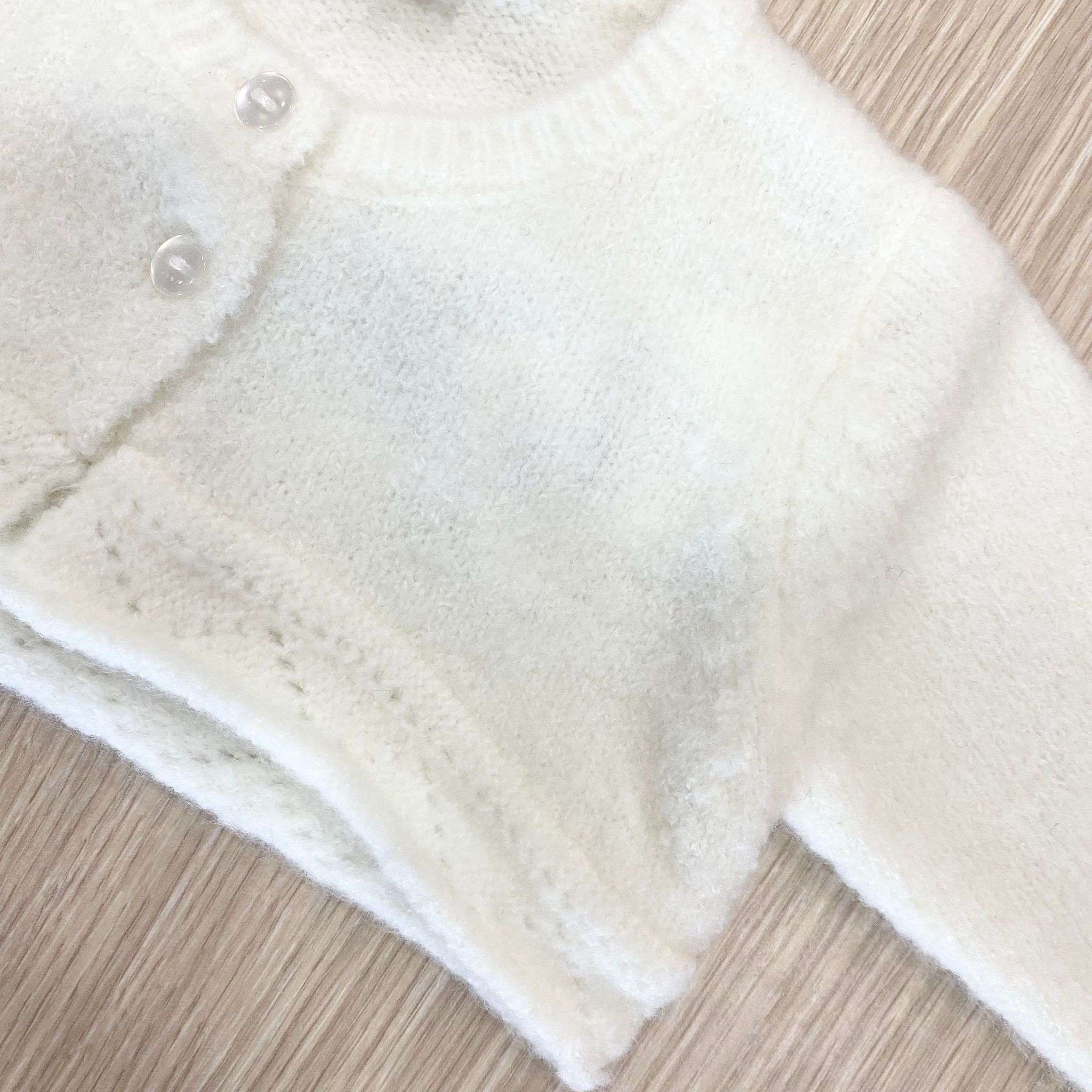 Cardigan/coprispalle scaldacuore neonata/bambina in caldo tessuto misto lana, di colore panna. 56% Acrilica 35% Poliammide. 5% Lana. 4% Elastan.