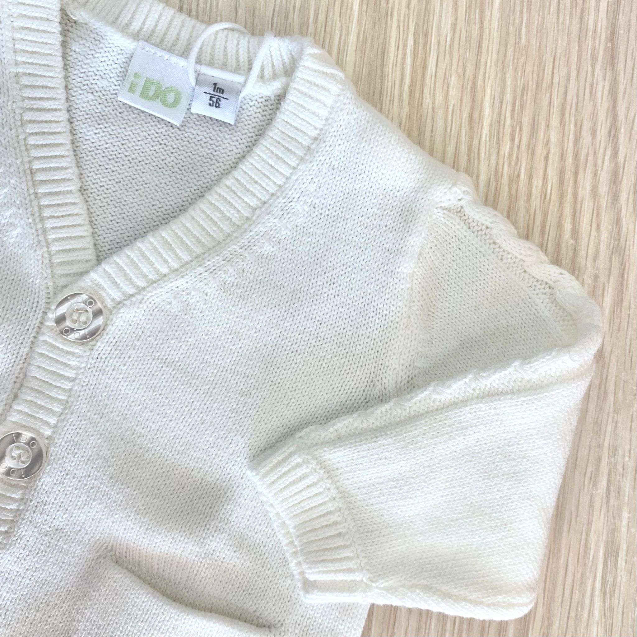 Cardigan neonato/bambino in caldo cotone, di colore panna, con dettaglio di tasca. Cardigan con bottoncini. 100% Cotone.