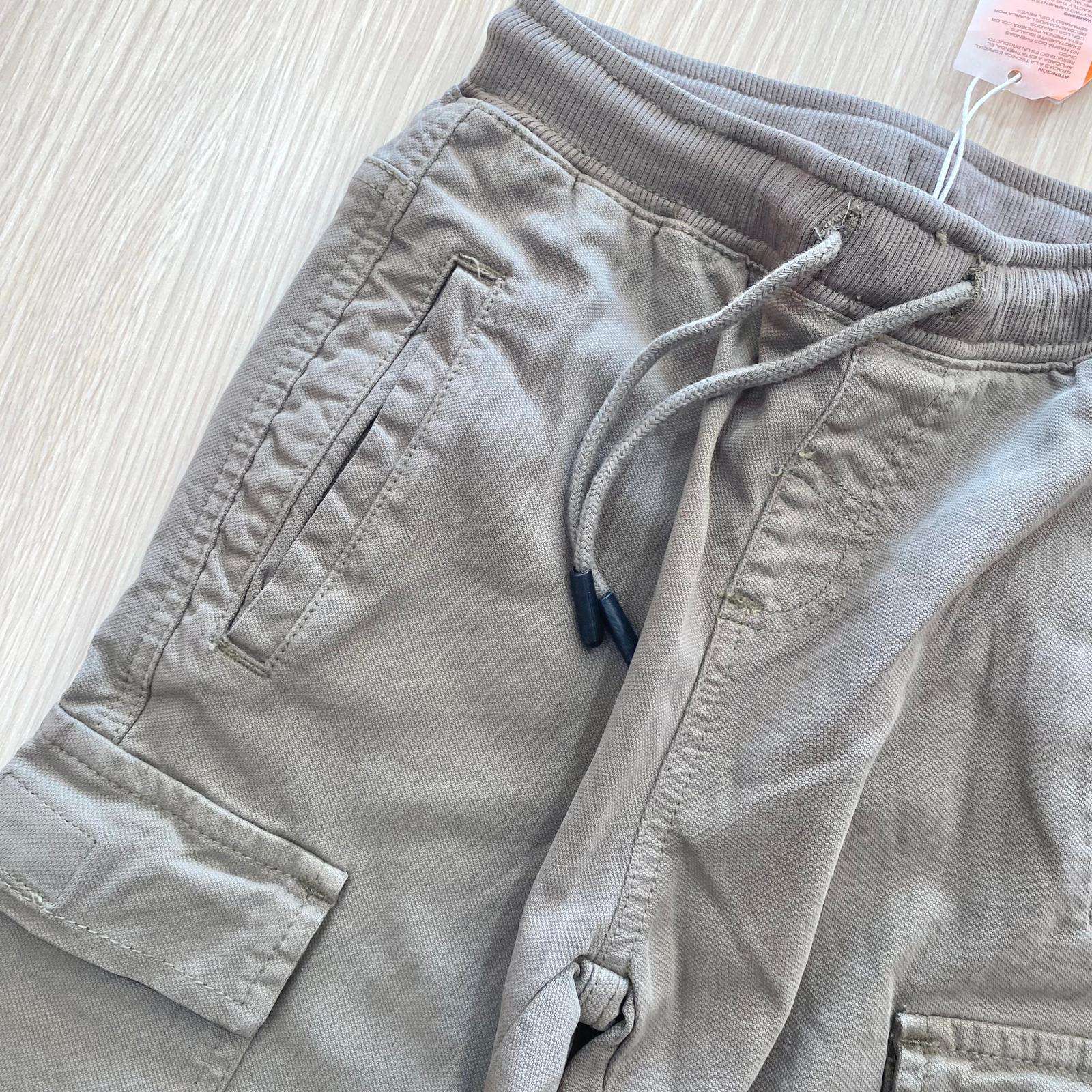 Cargo bambino/ragazzo in cotone, di colore verde chiaro, con dettaglio di tasconi e dettaglio di elastico regolabile all’interno.