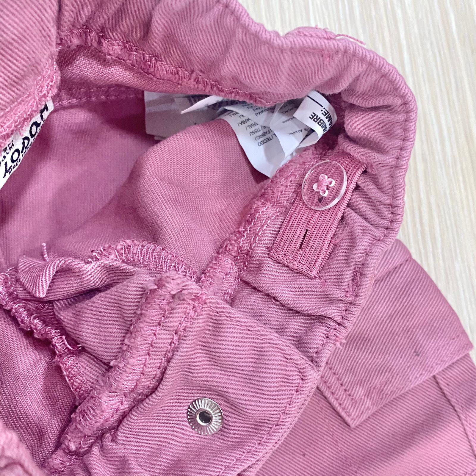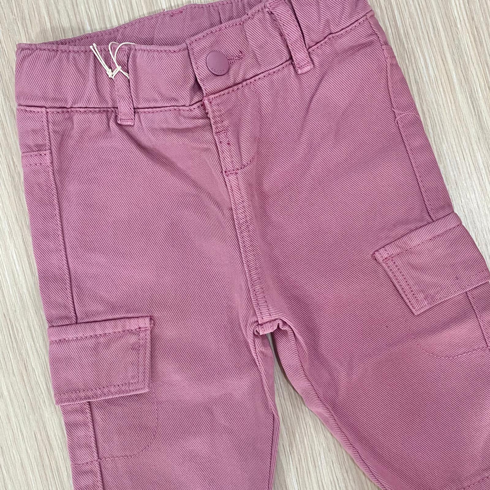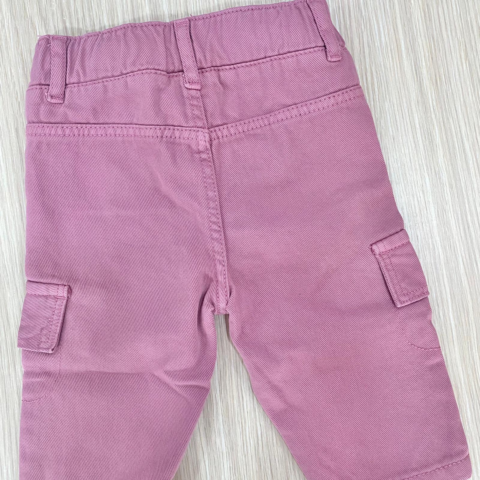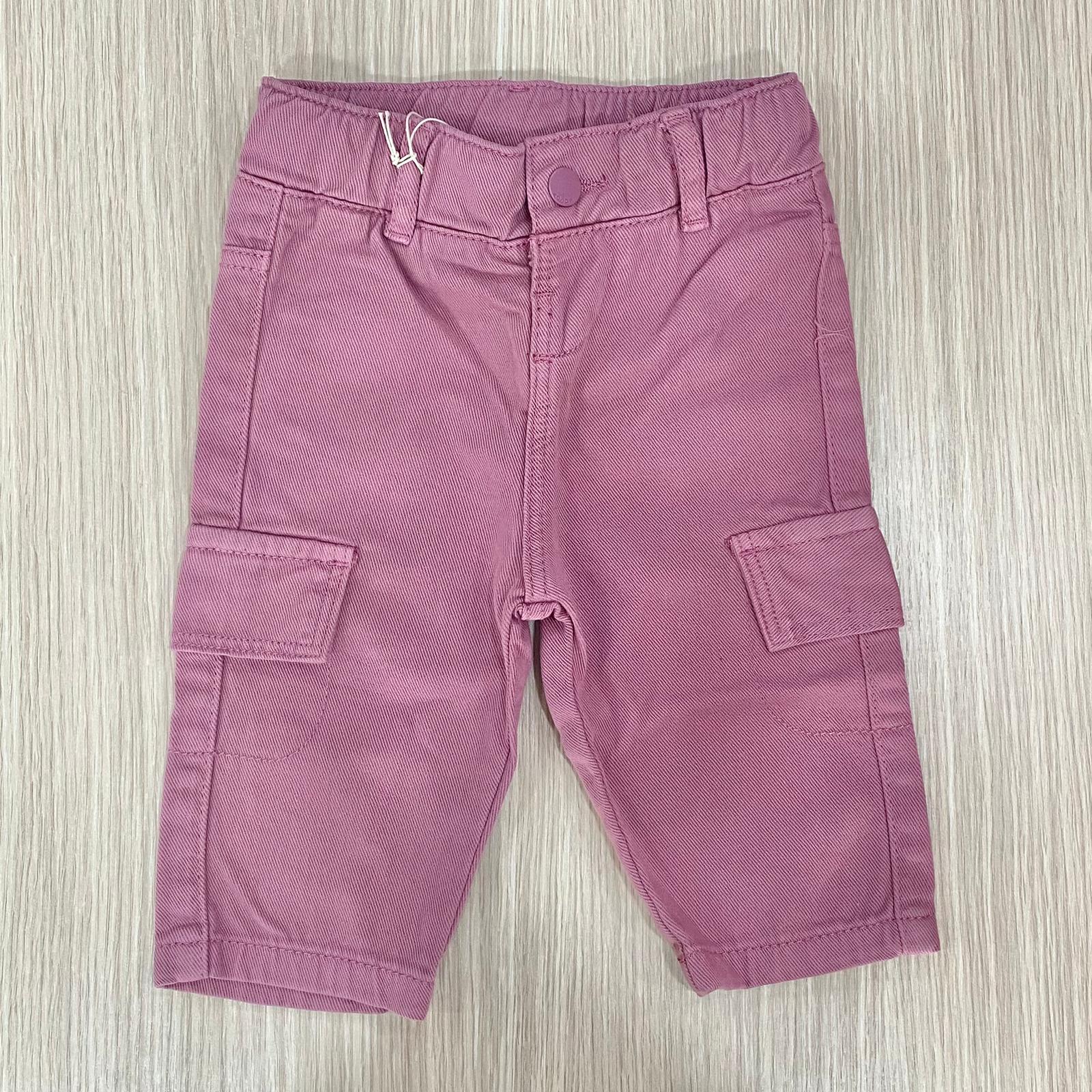 Cargo neonata/bambina in cotone, di colore rosa, con tasconi laterali ed elastico regolabile all’interno. 100% Cotone.