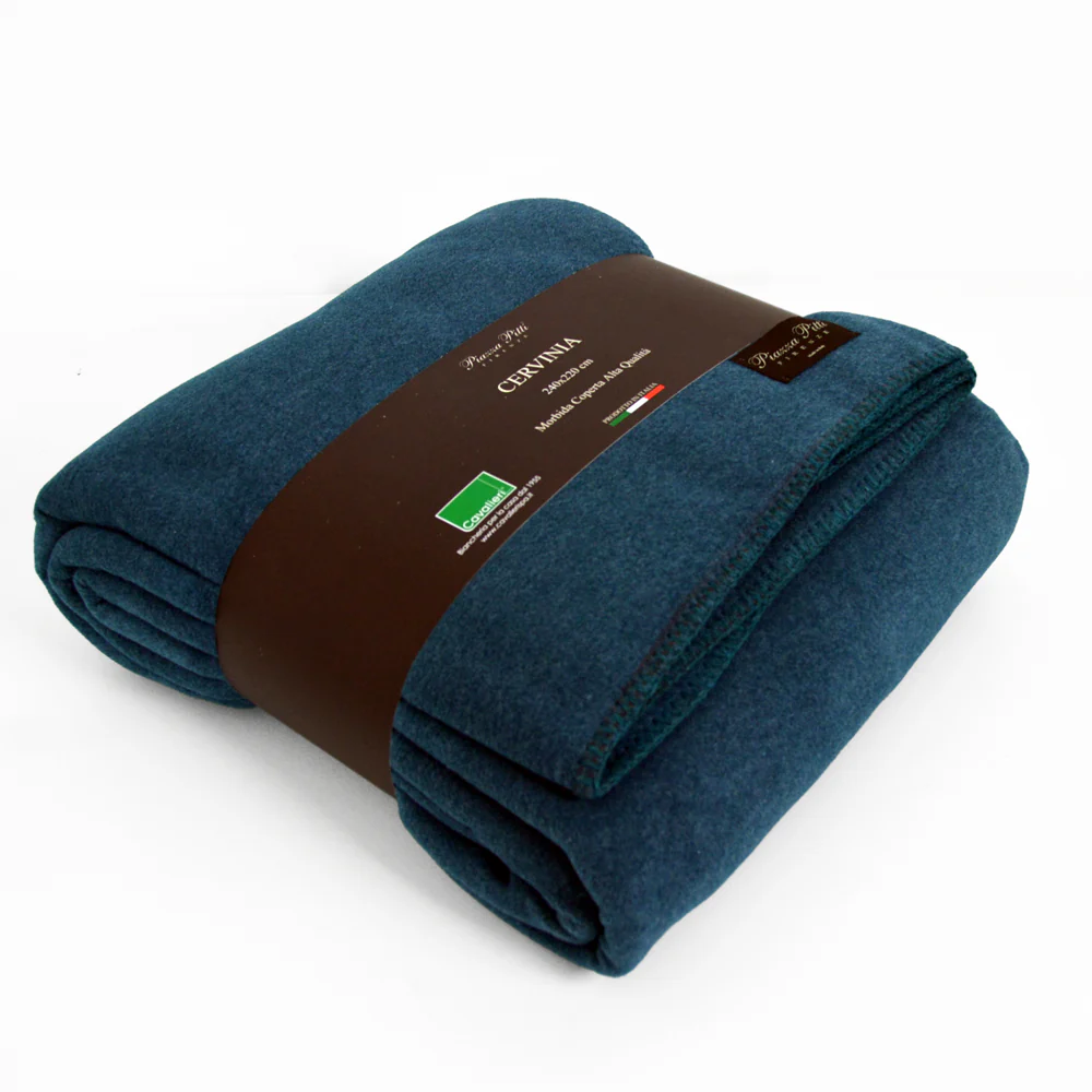 La coperta di alta qualità Cervinia è in morbido pile, calda, soffice e vellutata al tatto è ideale per il letto o il divano. L’originale rifinitura in punto cavallo su tutto il perimetro conferisce un dettaglio raffinato ed originale al plaid. Il capo è facilmente lavabile in lavatrice, si asciuga rapidamente mantenendo la propria morbidezza inalterata nel tempo. Il prodotto è ideato e confezionato totalmente in Italia.