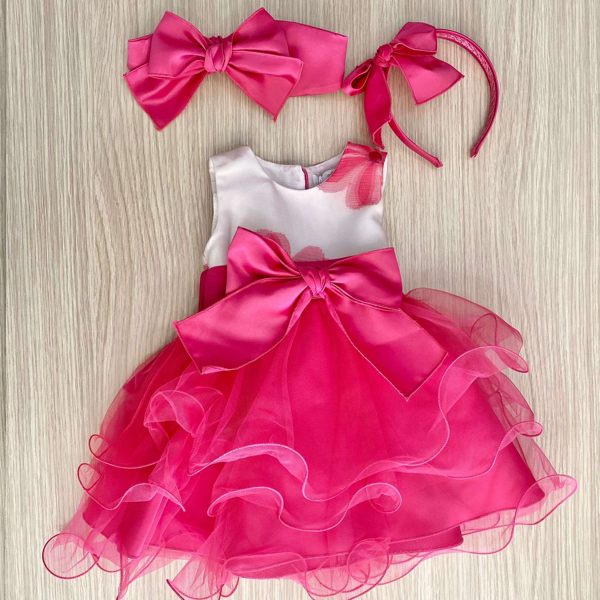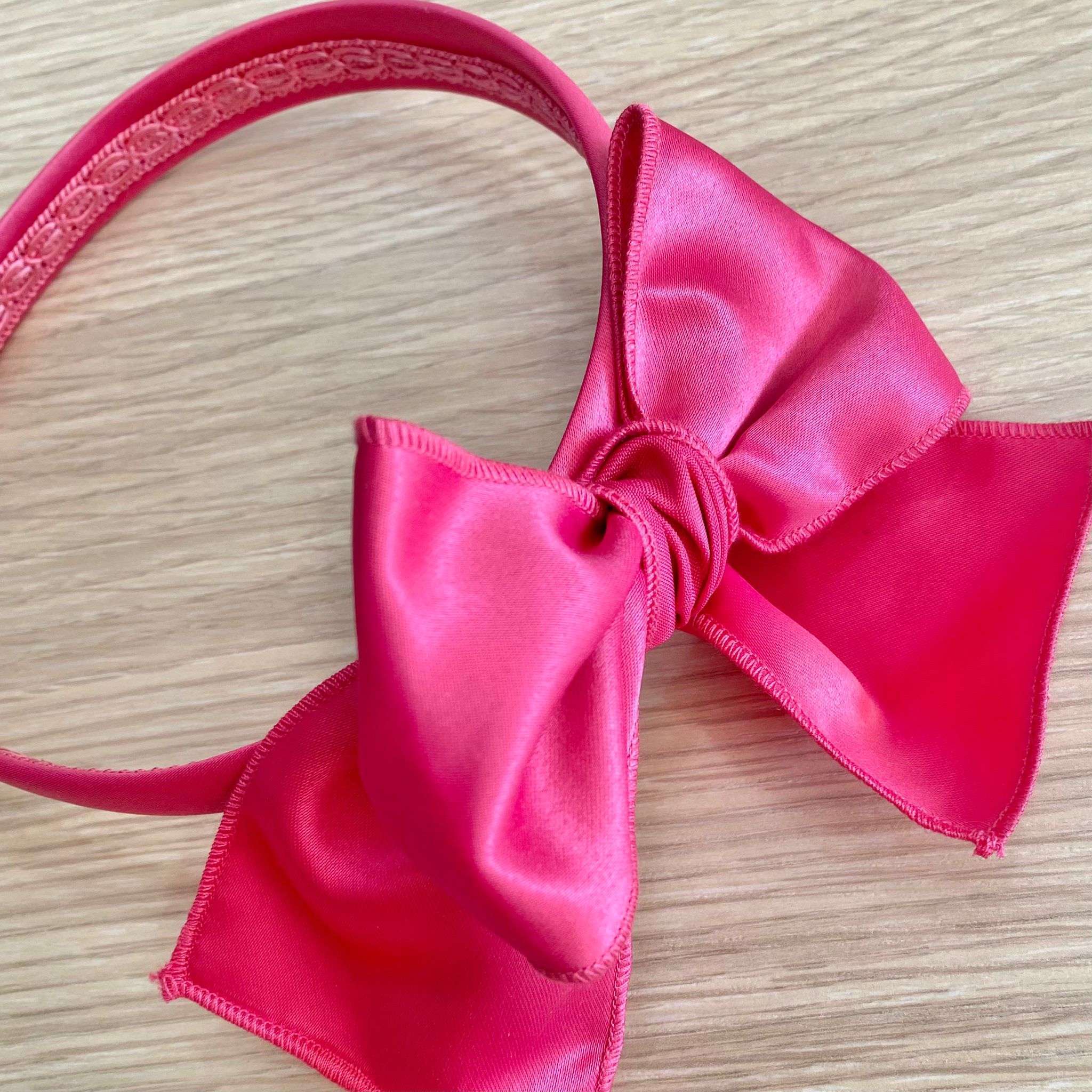 Cerchietto bambina in cotone rasato, di colore fucsia, con applicazione di fiocco. Taglia Unica: 6/24 Mesi. Cerchietto bambina elegante ideale per battesimo e cerimonie.