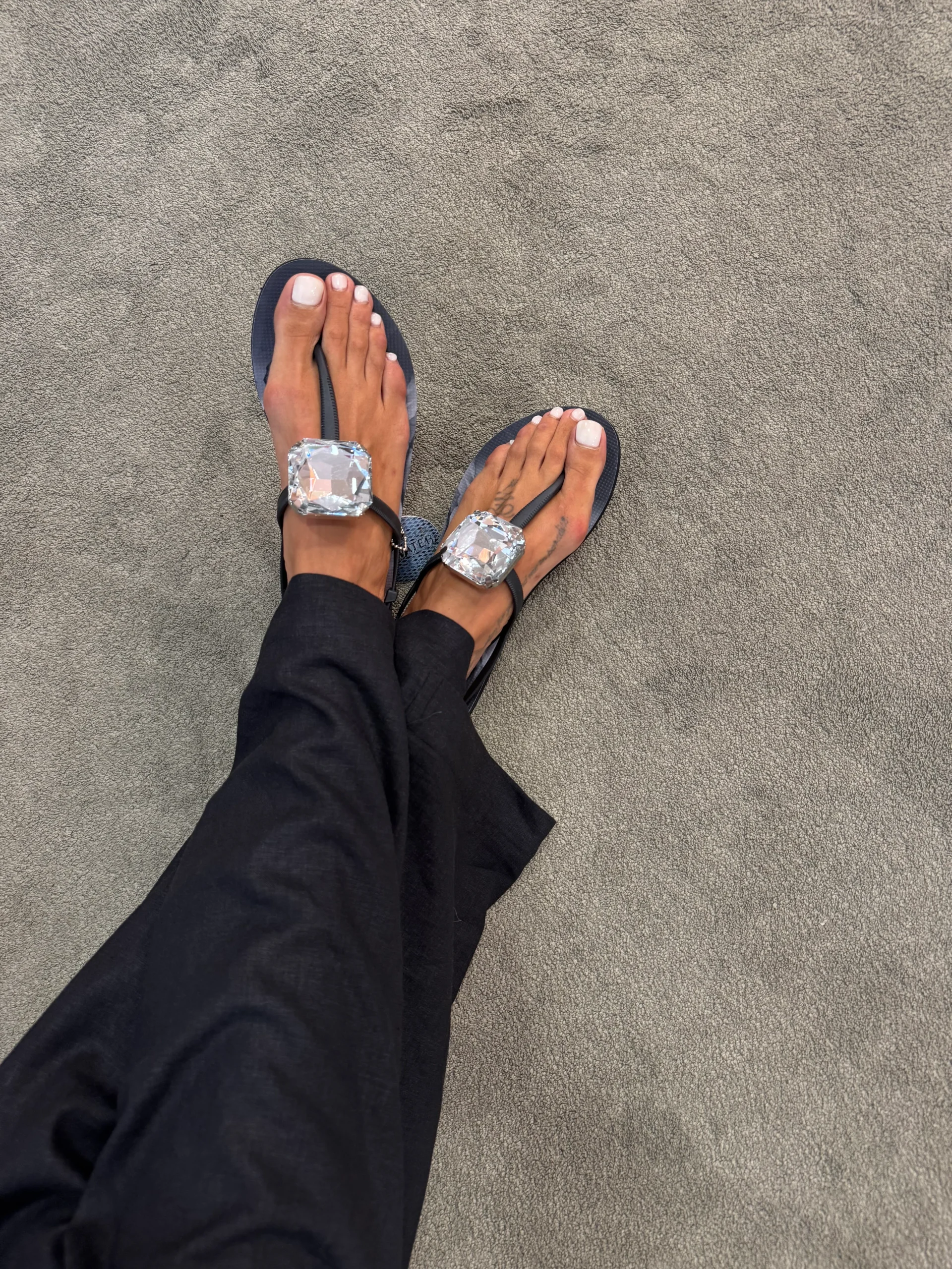 Ciabattina infradito in gomma nera con pietra centrale argento