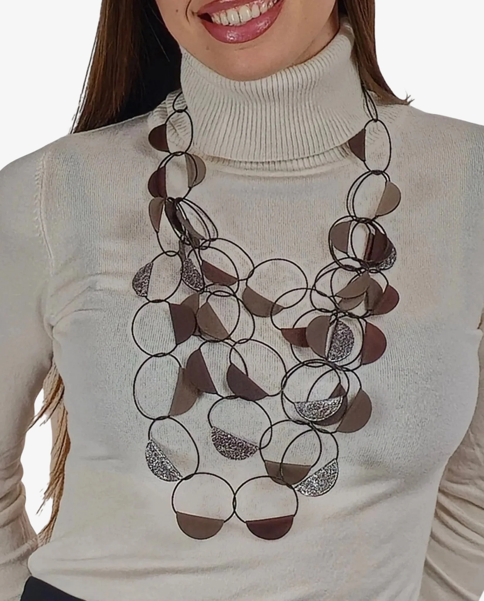 Collana Mezze Lune Brown artigianale, perfetta per aggiungere un tocco elegante al tuo look mare. Accessorio handmade unico che valorizza ogni outfit estivo o invernale