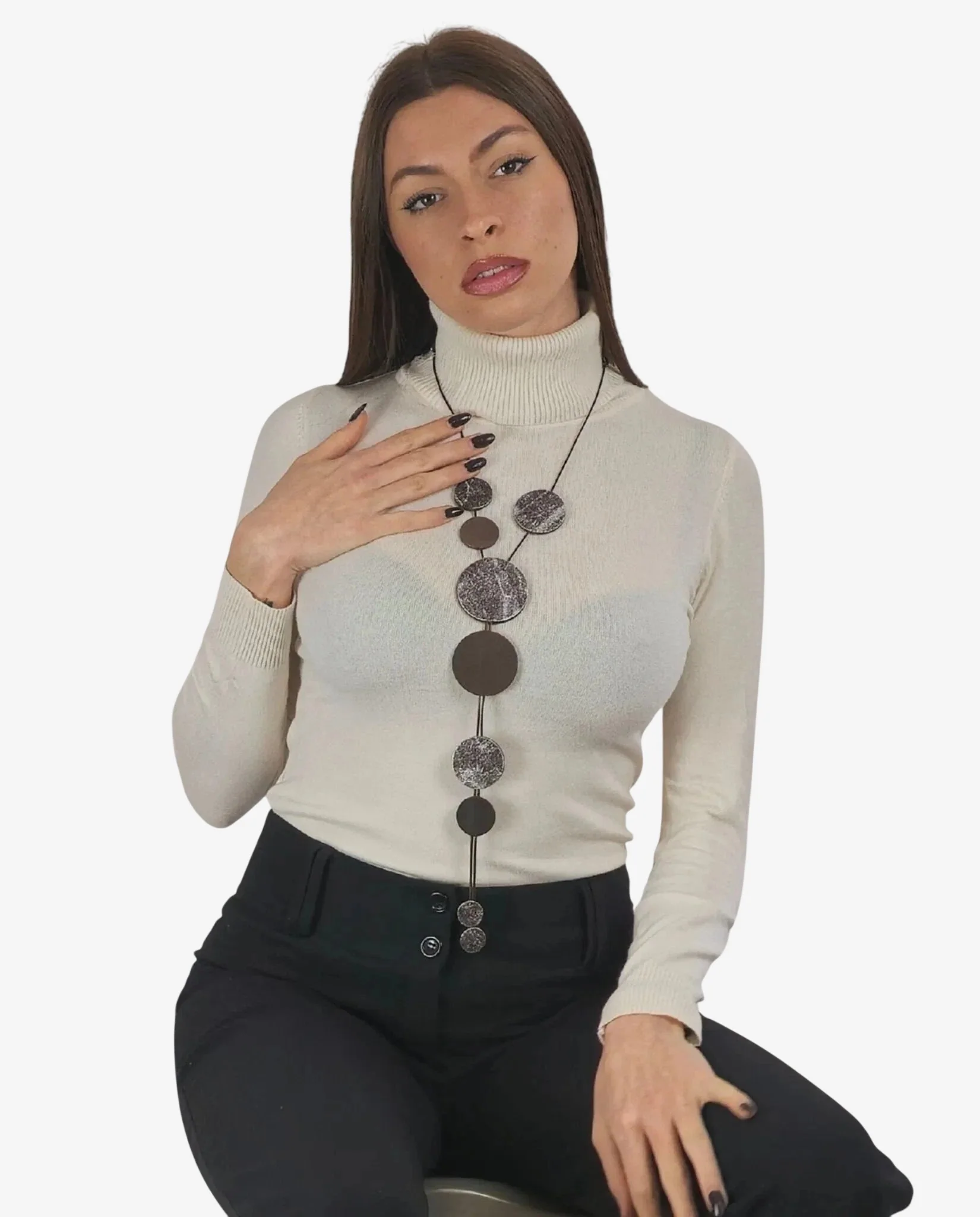 Collana Y Brown artigianale, perfetta per aggiungere un tocco elegante al tuo look mare e invernale. Accessorio handmade unico che valorizza ogni outfit. Perfetto da abbinare a: Bikini premium per l’estate Kaftani eleganti Sciarpe e Cappelli per l’inverno Abbigliamento Autunno/Inverno