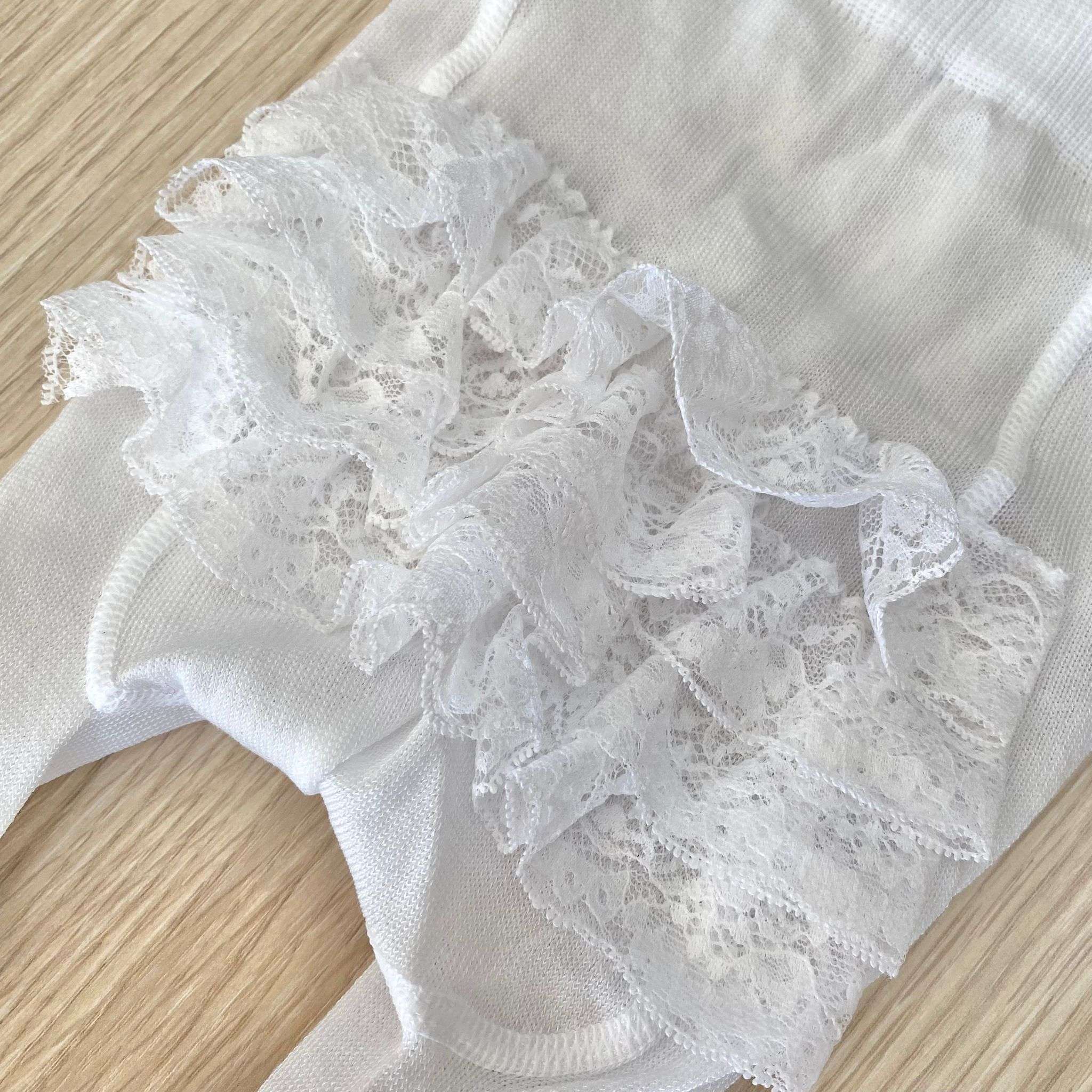 Collant neonata/bambina in cotone, di colore bianco con applicazione di riccetto. 75% Cotone. 25% Poliammide. Made in Italy.