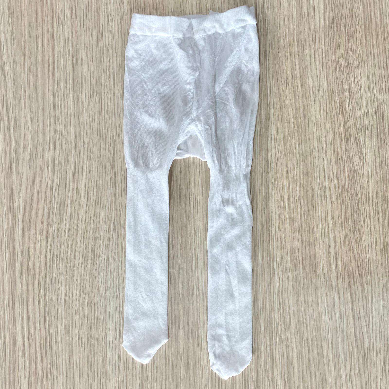 Collant neonata/bambina in cotone elasticizzato, di colore bianco.
