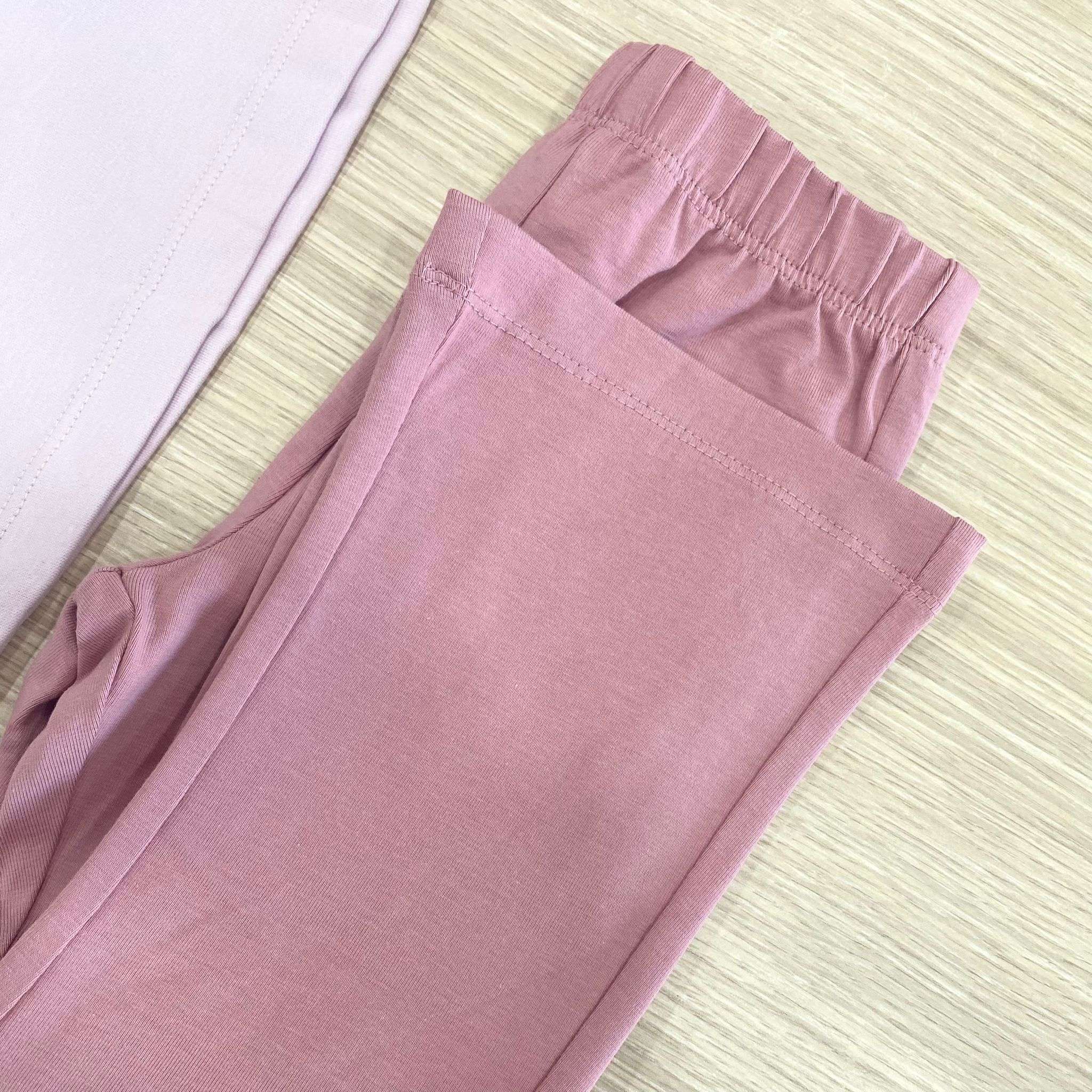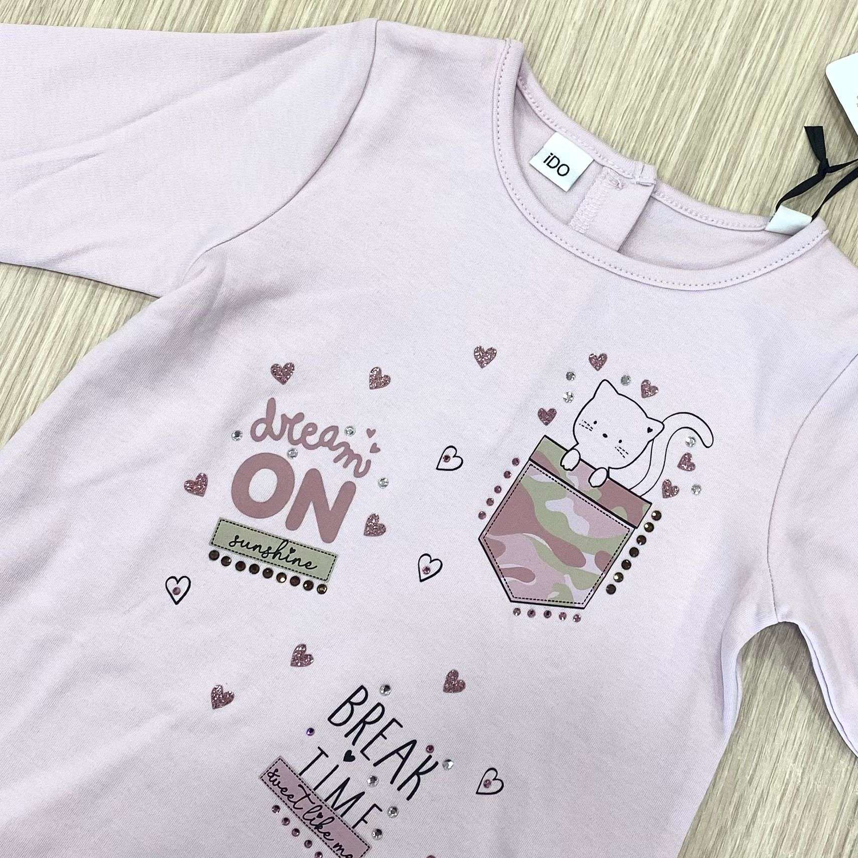 Completo due pezzi bambina in caldo cotone, di colore rosa, con stampa di vari colori e applicazione di strass. 100% Cotone.