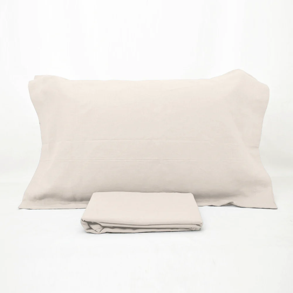Bianco Perla – Completo Lenzuola Cotone e Lino StoneWashed No Stiro – Loira