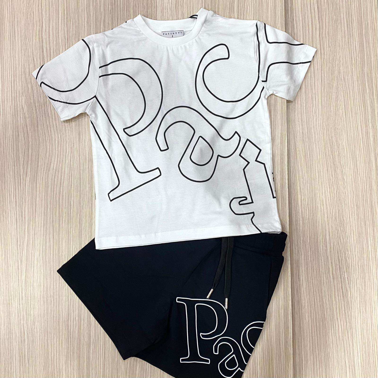 Completo firmato Paciotti pensato per il ragazzo che ama uno stile moderno e riconoscibile. Il set è composto da una T-shirt bianca a manica corta con maxi logo Paciotti a contrasto, dal design grafico e contemporaneo, e da shorts neri coordinati con stampa logo, per un look deciso e alla moda. La vestibilità confortevole e il tessuto morbido lo rendono ideale per l’uso quotidiano, il tempo libero e le attività estive, garantendo libertà di movimento e praticità. Un outfit versatile che unisce stile streetwear e qualità del brand, perfetto per distinguersi con carattere. Caratteristiche principali: • Completo due pezzi: T-shirt…