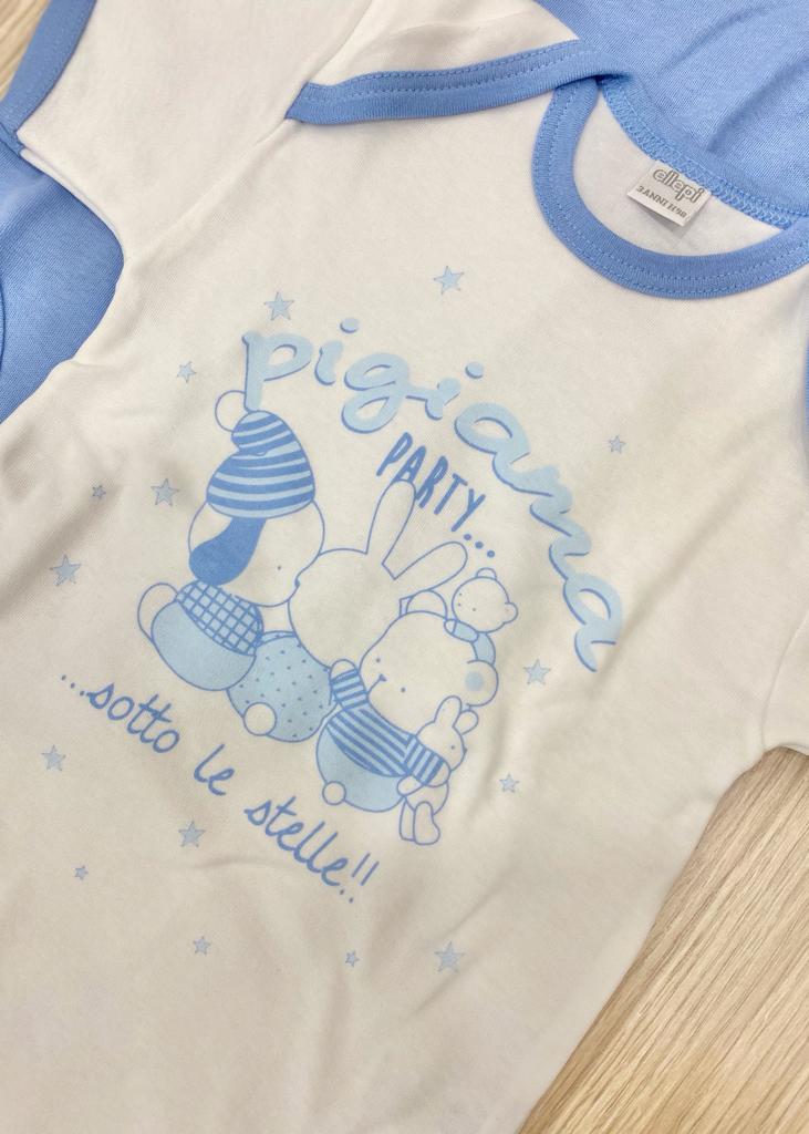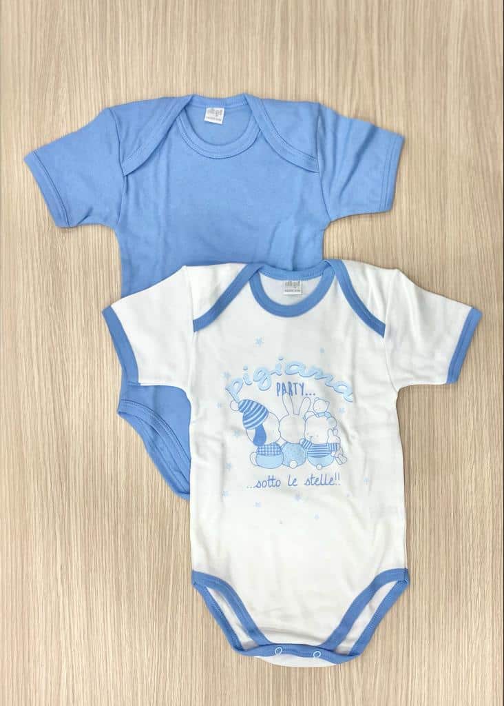 Coppia body neonato in morbido cotone leggermente felpato, di colore celeste e bianco. 3 Anni: 98 cm. 100% Cotone.