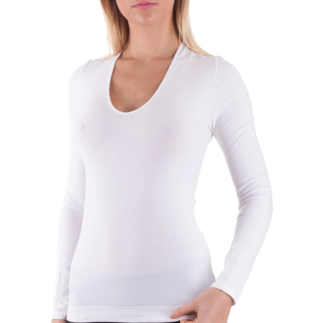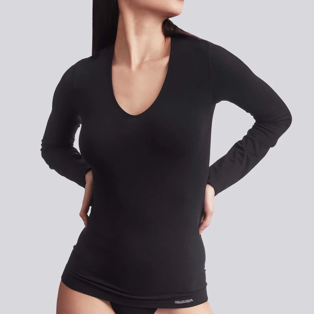 Maglia decolletè manica lunga, in microfibra elasticizzata.