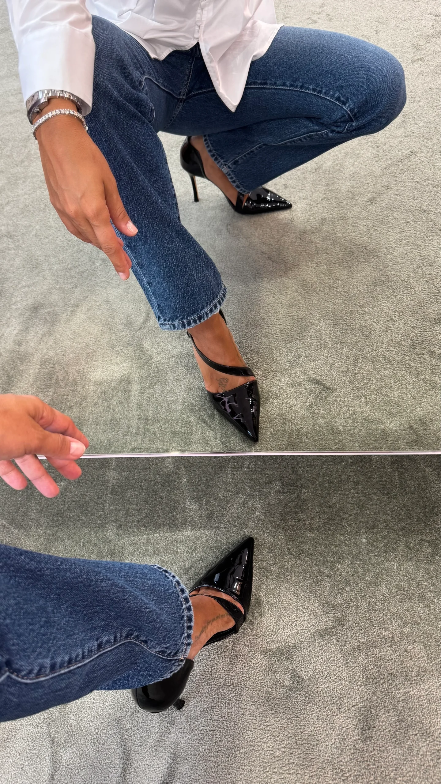 Décolleté nera in vernice con listino