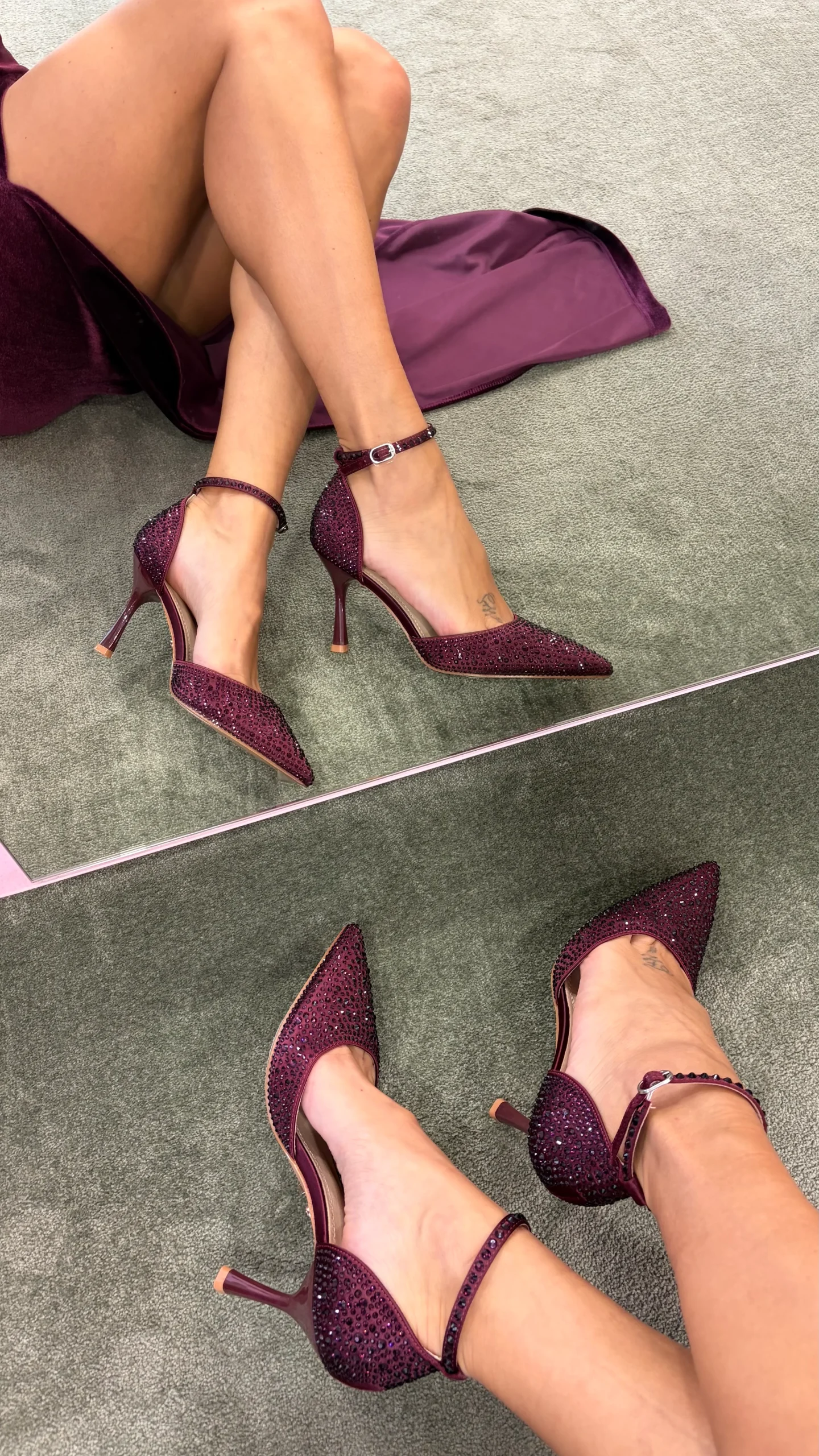 Décolleté prugna con cristalli e cinturino