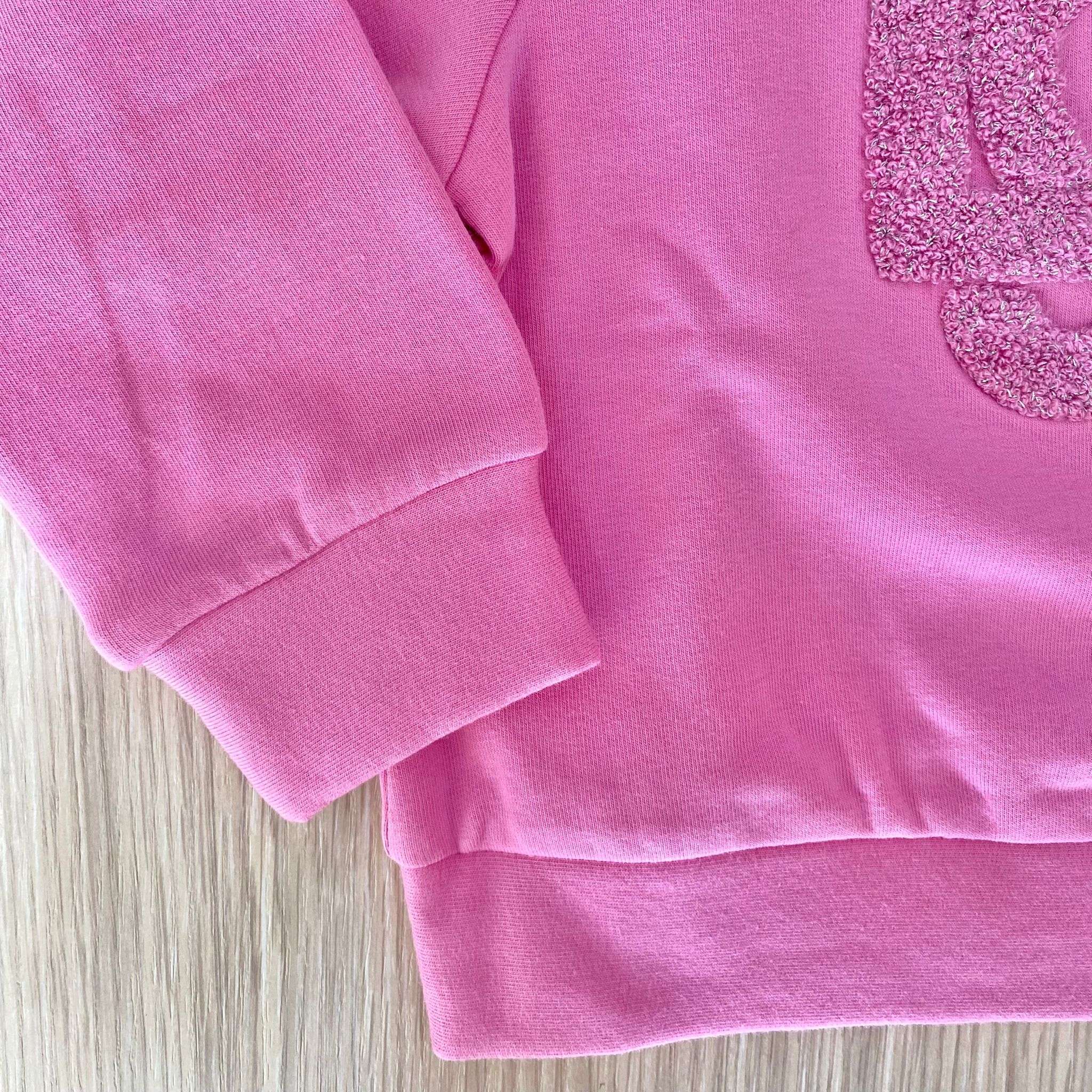 Felpa bambina in cotone felpato, di colore rosa, con logo in rilievo. 95% Cotone. 5% Elastane.